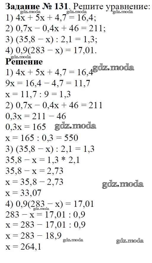 ОТВЕТ на задание № 131 Учебник по Математике 6 класс Мерзляк Алгоритм успеха