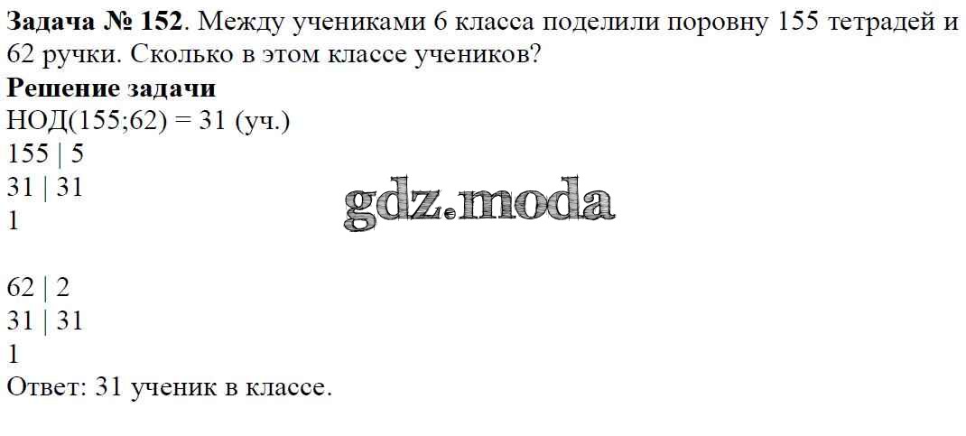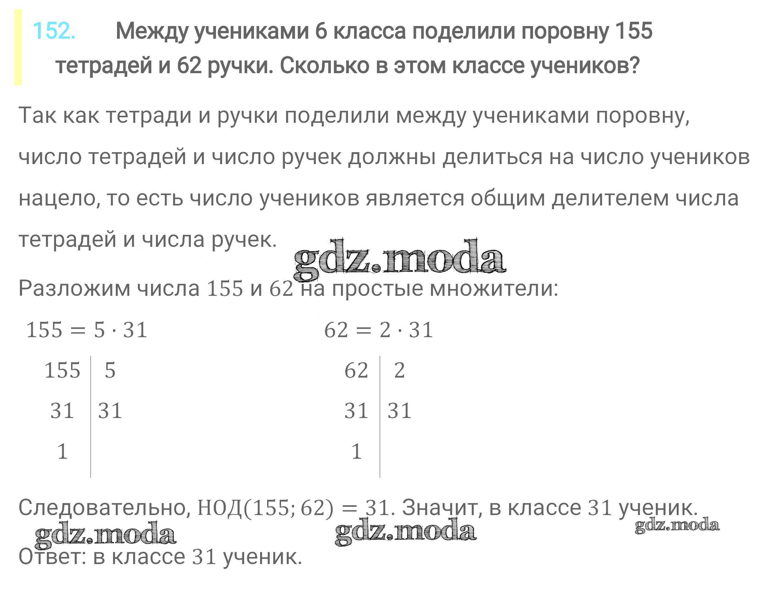 ОТВЕТ на задание № 152 Учебник по Математике 6 класс Мерзляк Алгоритм успеха