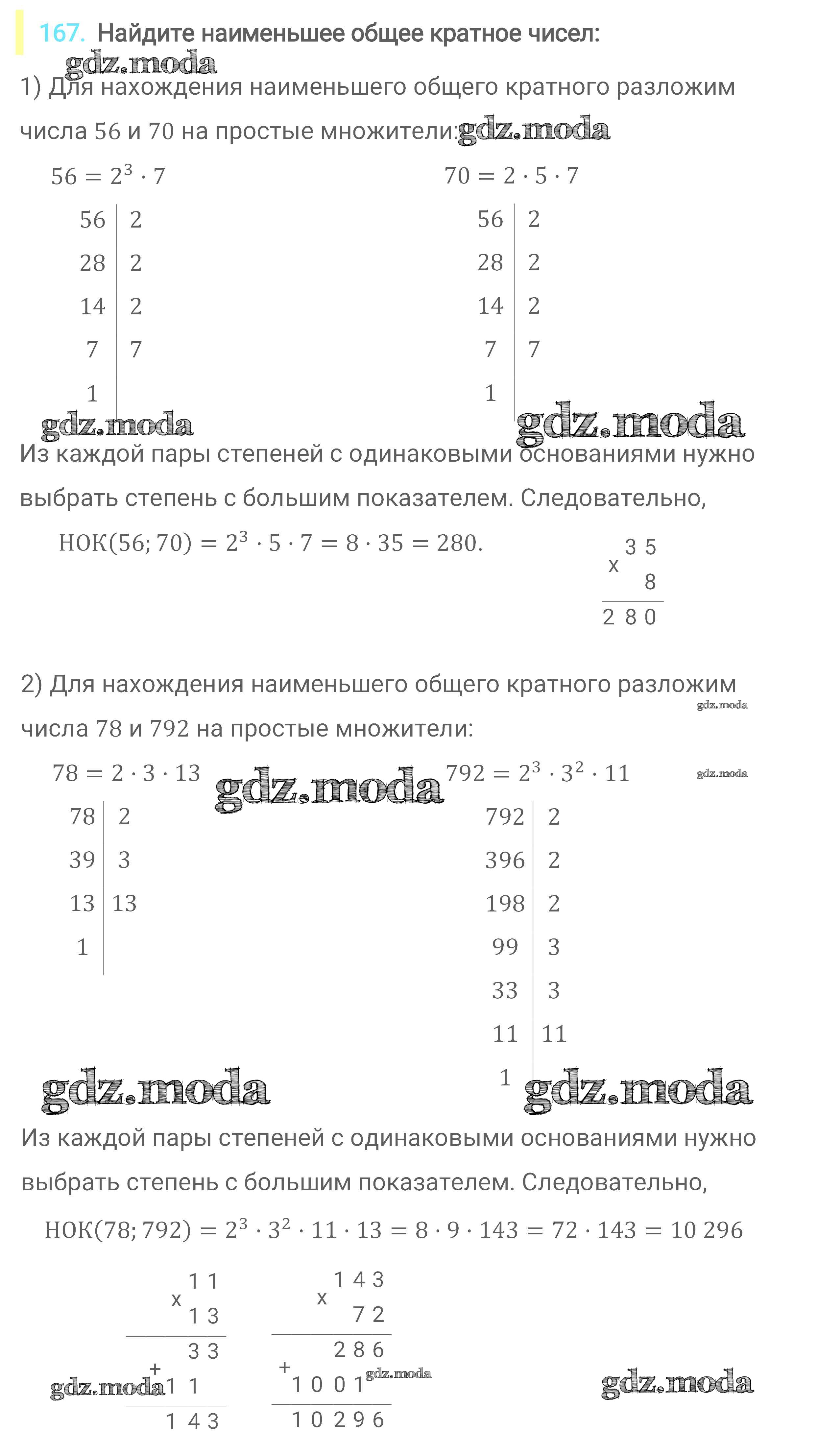 ОТВЕТ на задание № 167 Учебник по Математике 6 класс Мерзляк Алгоритм успеха