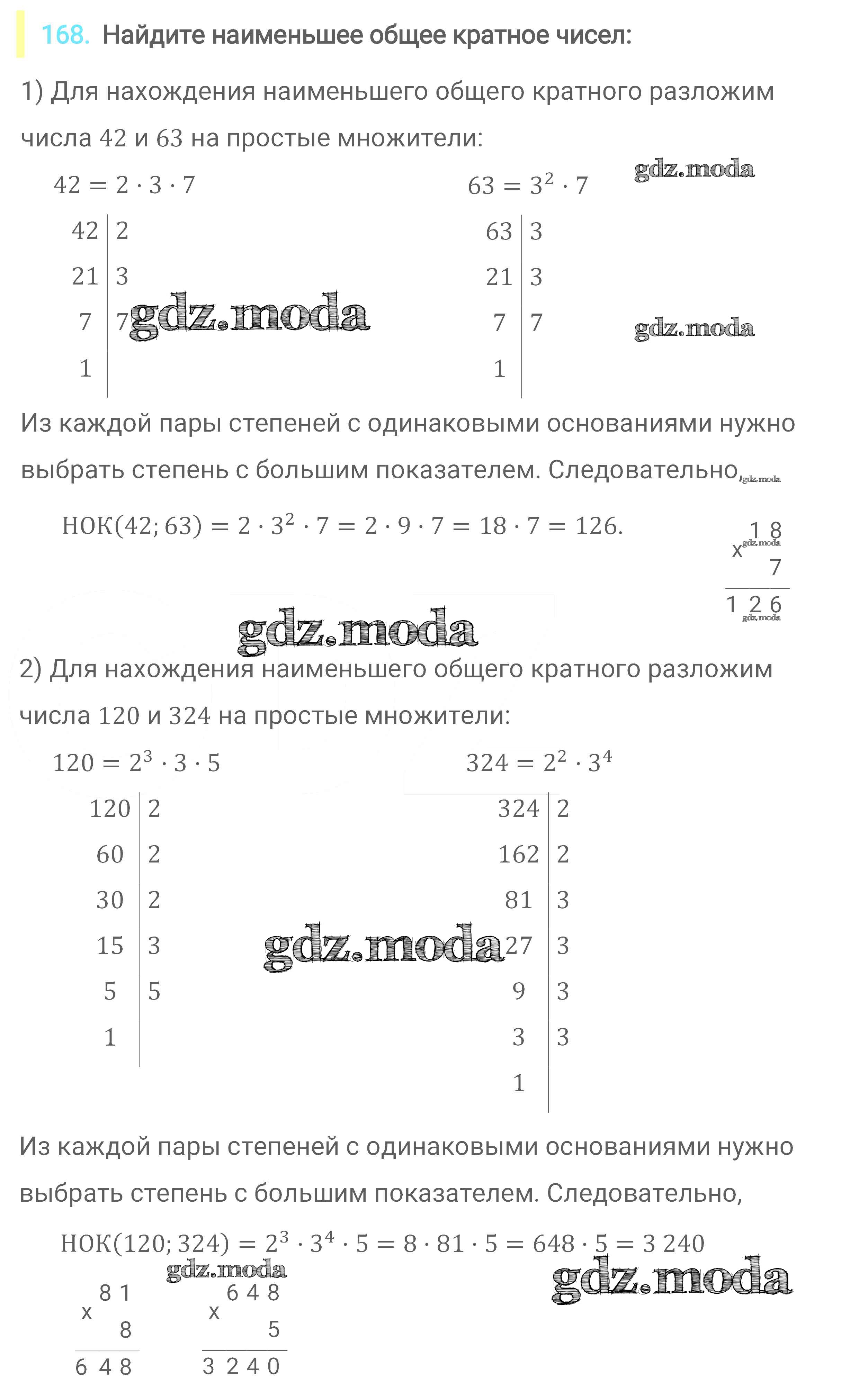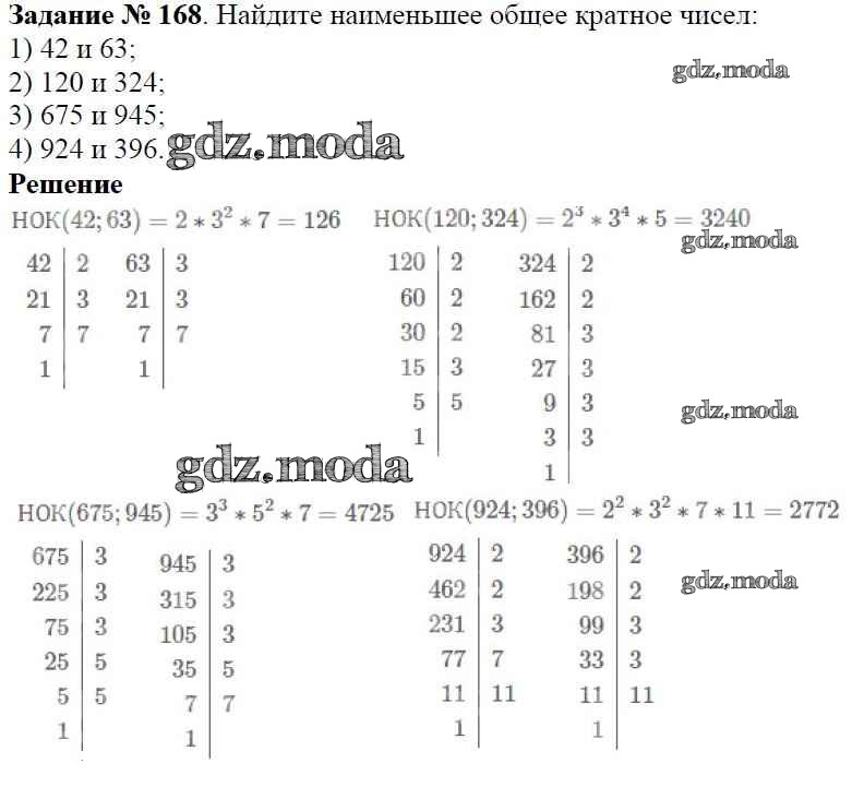 ОТВЕТ на задание № 168 Учебник по Математике 6 класс Мерзляк Алгоритм успеха