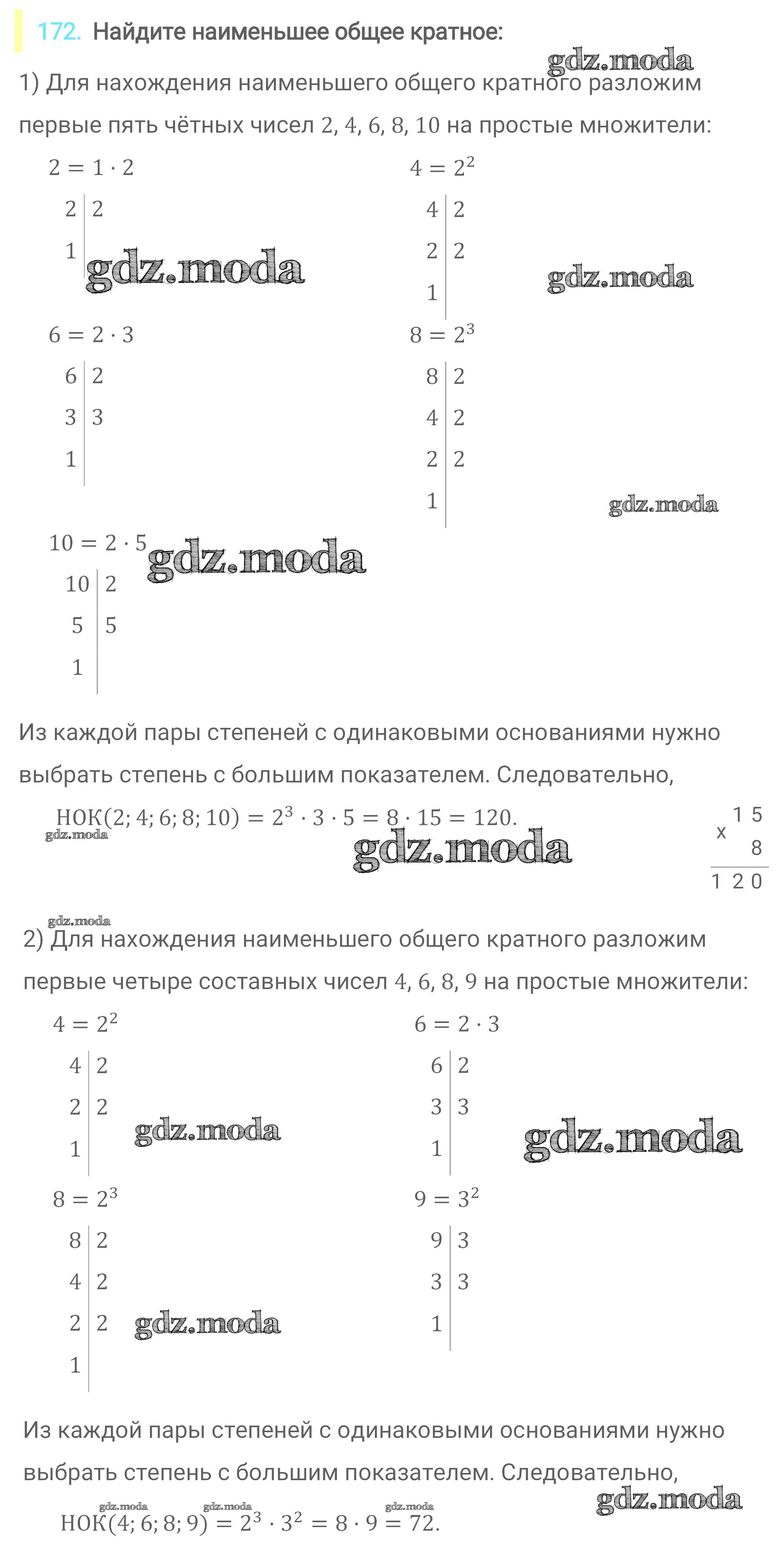 ОТВЕТ на задание № 172 Учебник по Математике 6 класс Мерзляк Алгоритм успеха