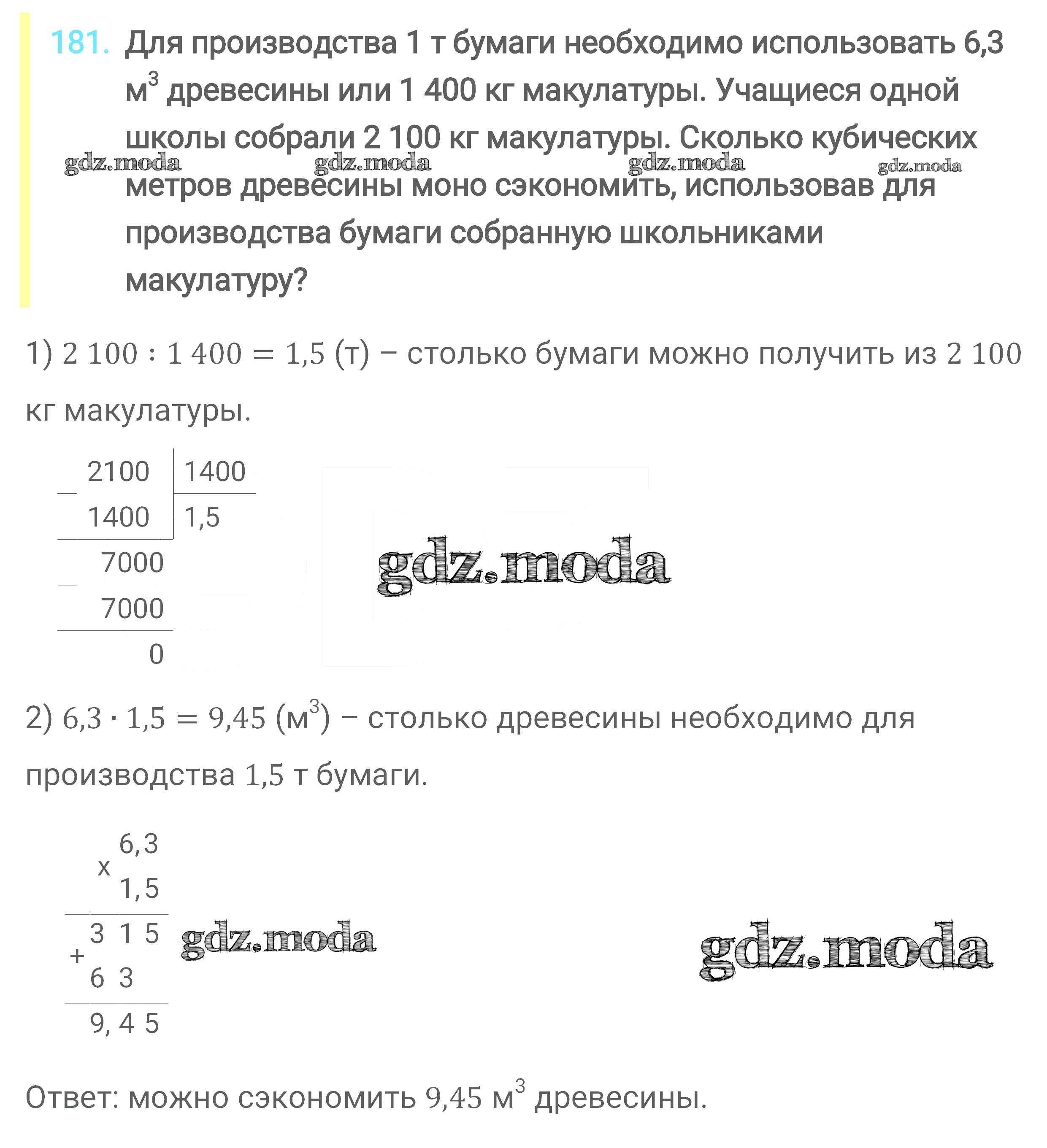 ОТВЕТ на задание № 181 Учебник по Математике 6 класс Мерзляк Алгоритм успеха