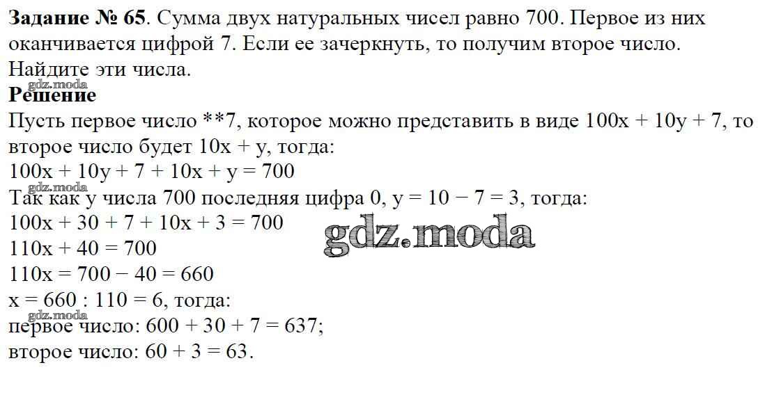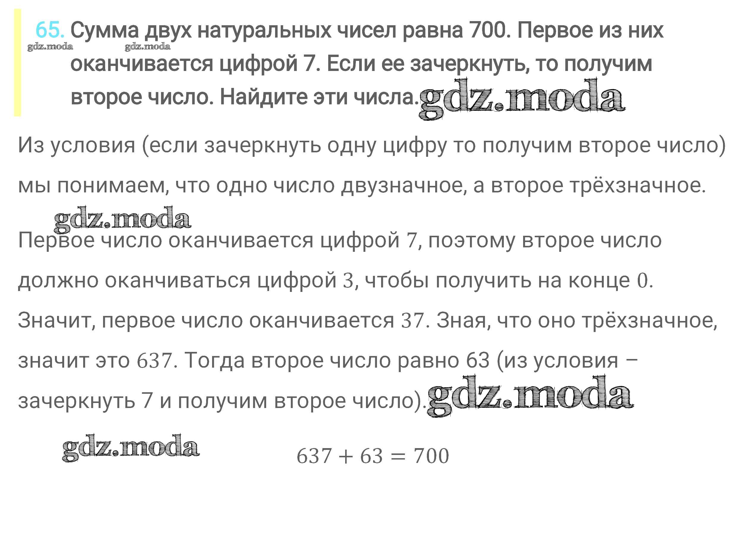 ОТВЕТ на задание № 65 Учебник по Математике 6 класс Мерзляк Алгоритм успеха