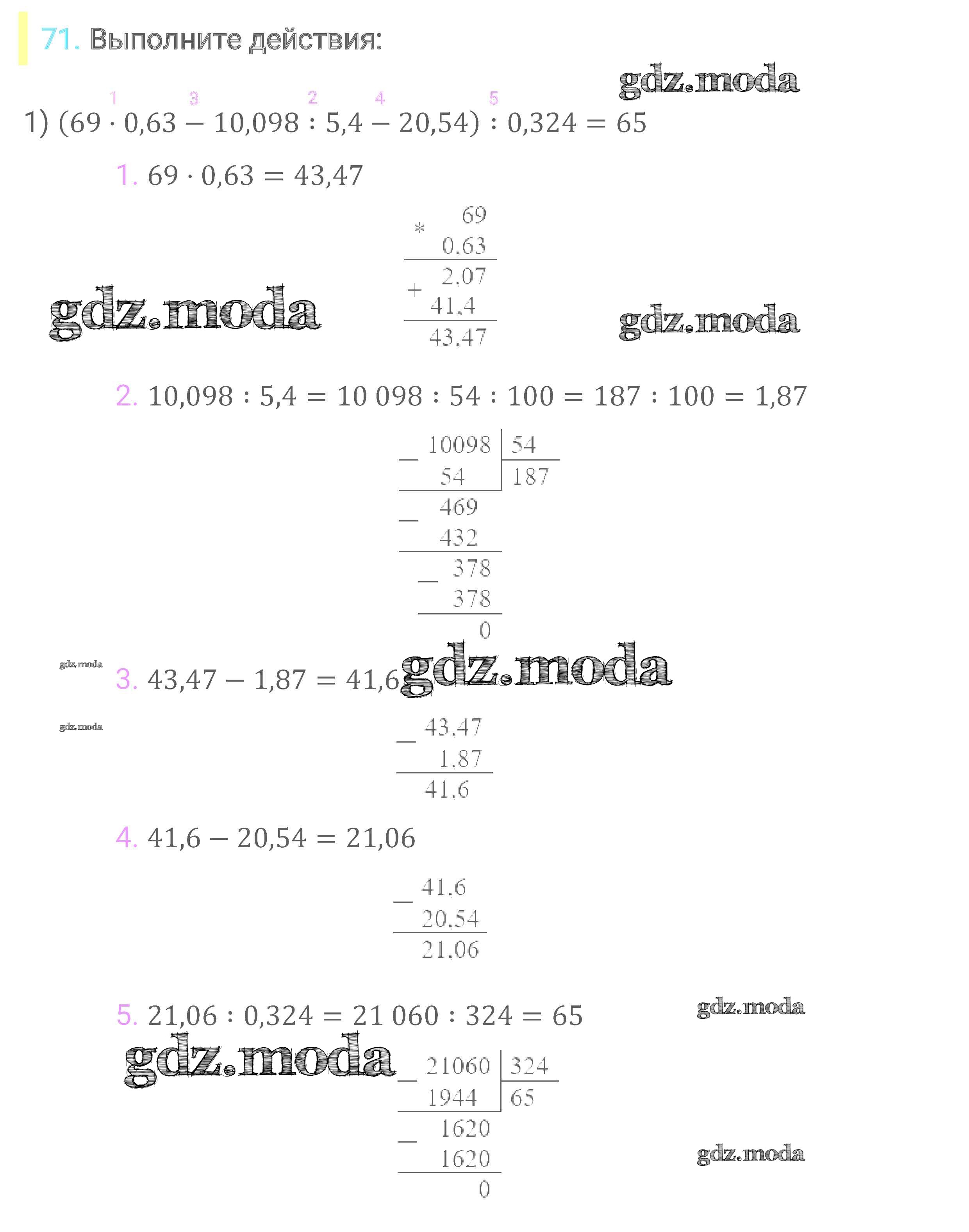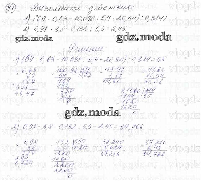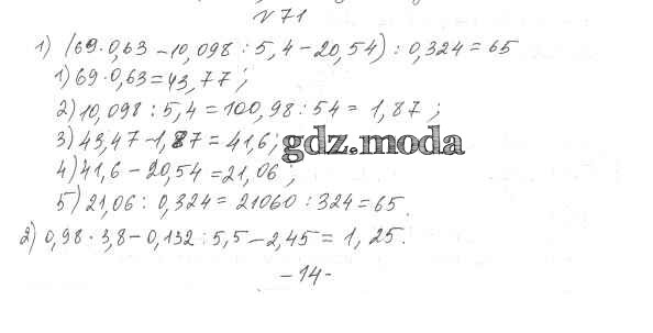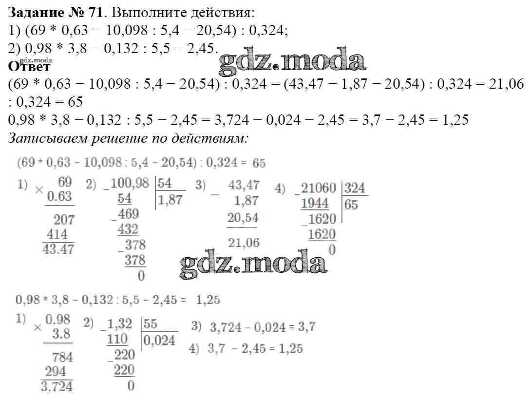 ОТВЕТ на задание № 71 Учебник по Математике 6 класс Мерзляк Алгоритм успеха
