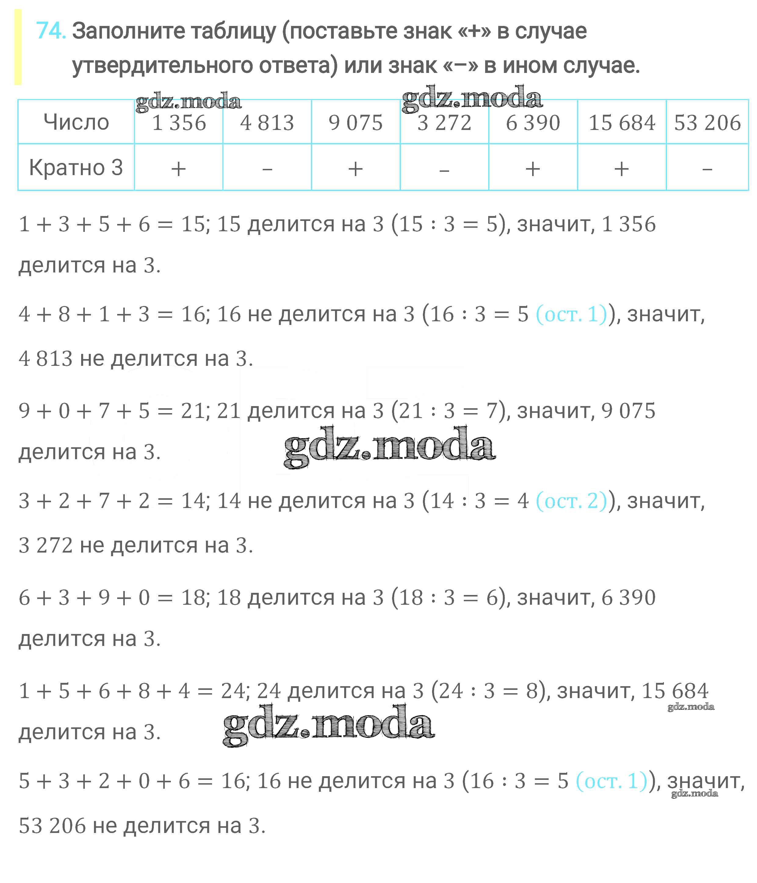ОТВЕТ на задание № 74 Учебник по Математике 6 класс Мерзляк Алгоритм успеха