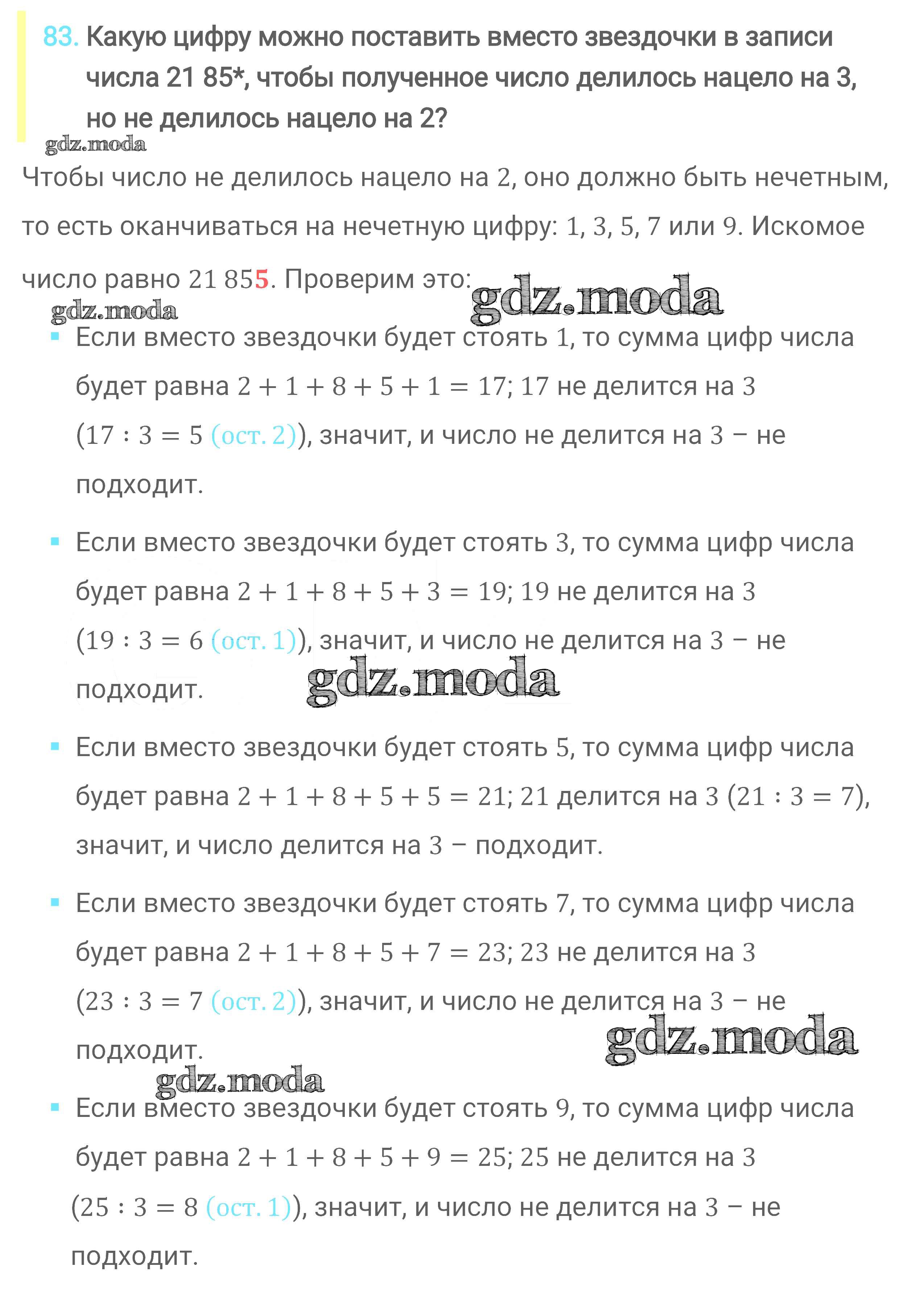 ОТВЕТ на задание № 83 Учебник по Математике 6 класс Мерзляк Алгоритм успеха