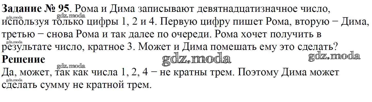 ОТВЕТ на задание № 95 Учебник по Математике 6 класс Мерзляк Алгоритм успеха