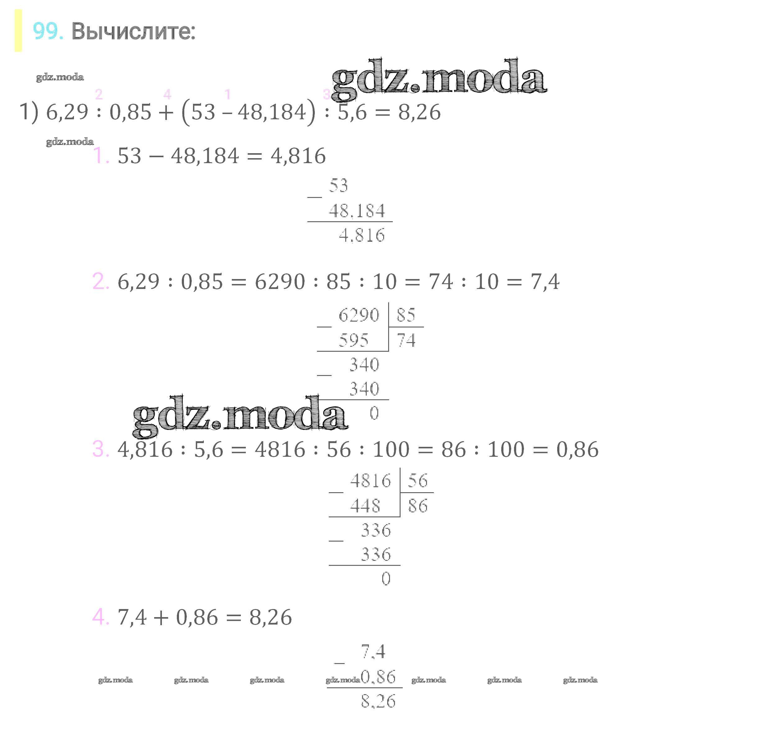 ОТВЕТ на задание № 99 Учебник по Математике 6 класс Мерзляк Алгоритм успеха