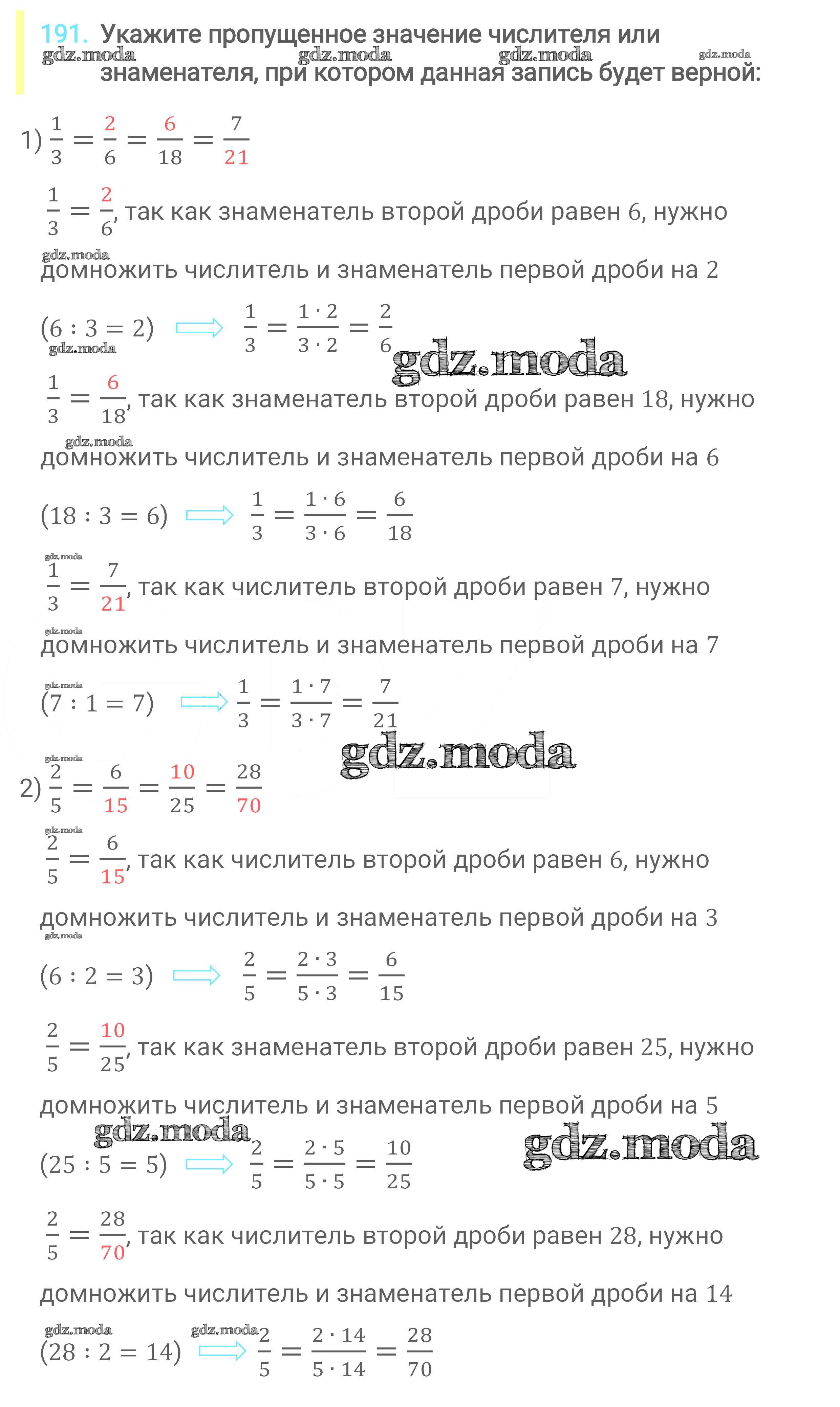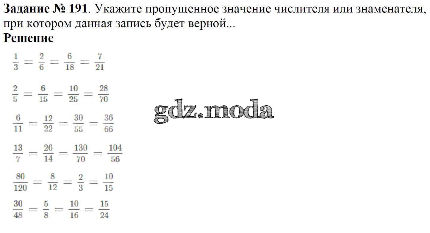 ОТВЕТ на задание № 191 Учебник по Математике 6 класс Мерзляк Алгоритм успеха