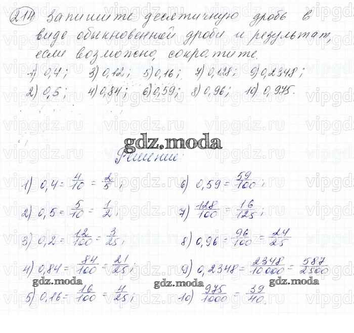 ОТВЕТ на задание № 214 Учебник по Математике 6 класс Мерзляк Алгоритм успеха
