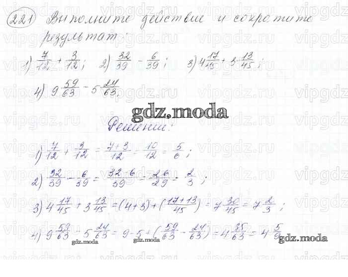 ОТВЕТ на задание № 221 Учебник по Математике 6 класс Мерзляк Алгоритм успеха