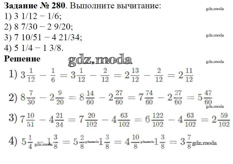 ОТВЕТ на задание № 280 Учебник по Математике 6 класс Мерзляк Алгоритм успеха