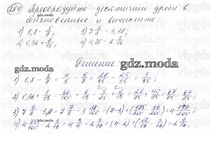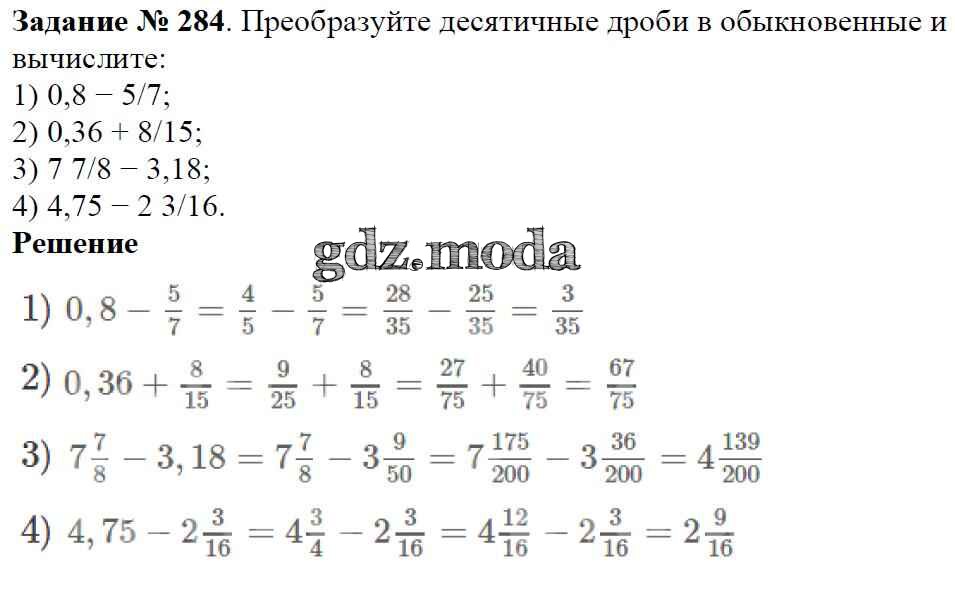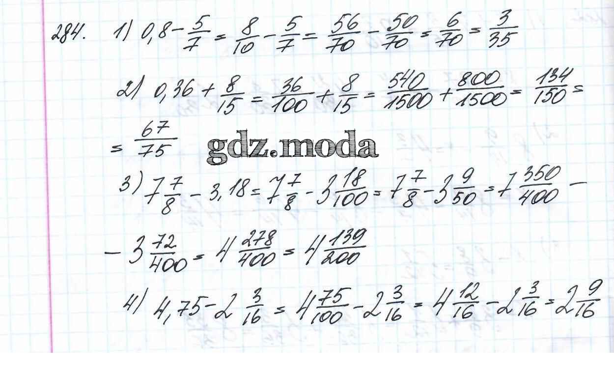 ОТВЕТ на задание № 284 Учебник по Математике 6 класс Мерзляк Алгоритм успеха