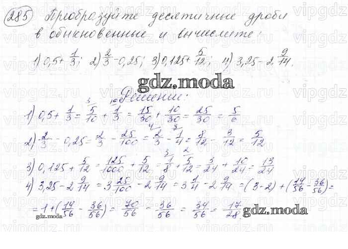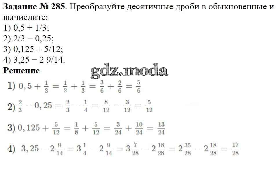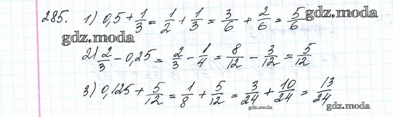 ОТВЕТ на задание № 285 Учебник по Математике 6 класс Мерзляк Алгоритм успеха
