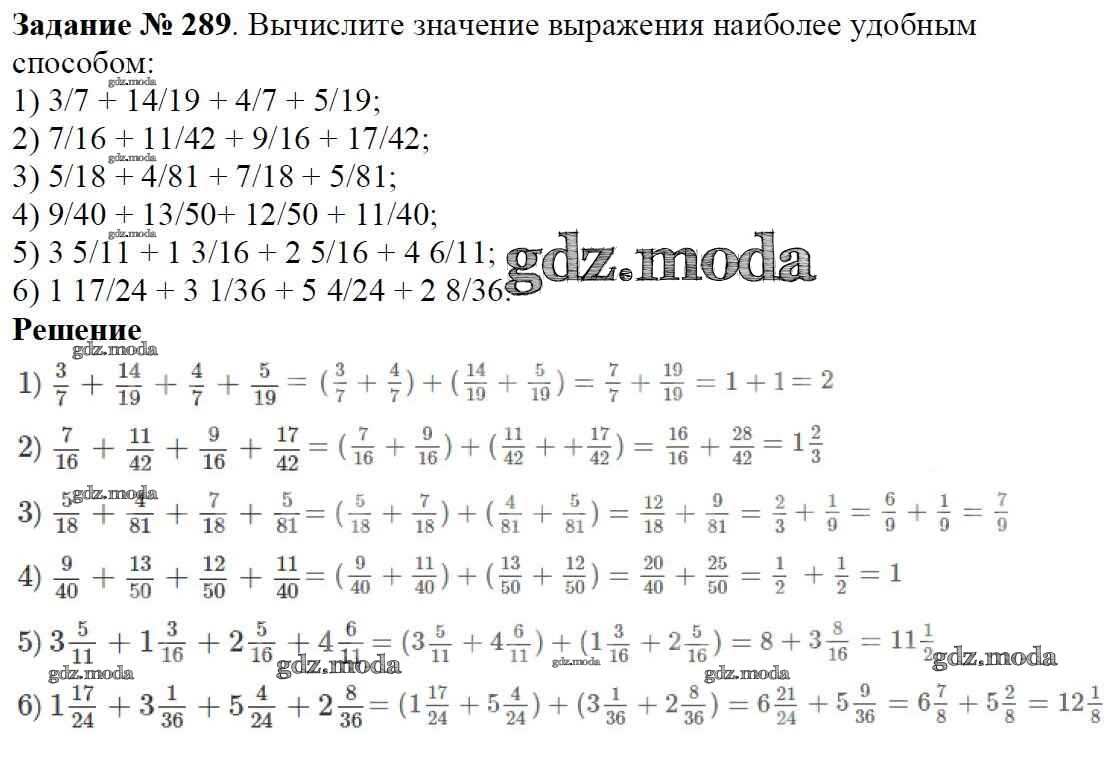 ОТВЕТ на задание № 289 Учебник по Математике 6 класс Мерзляк Алгоритм успеха