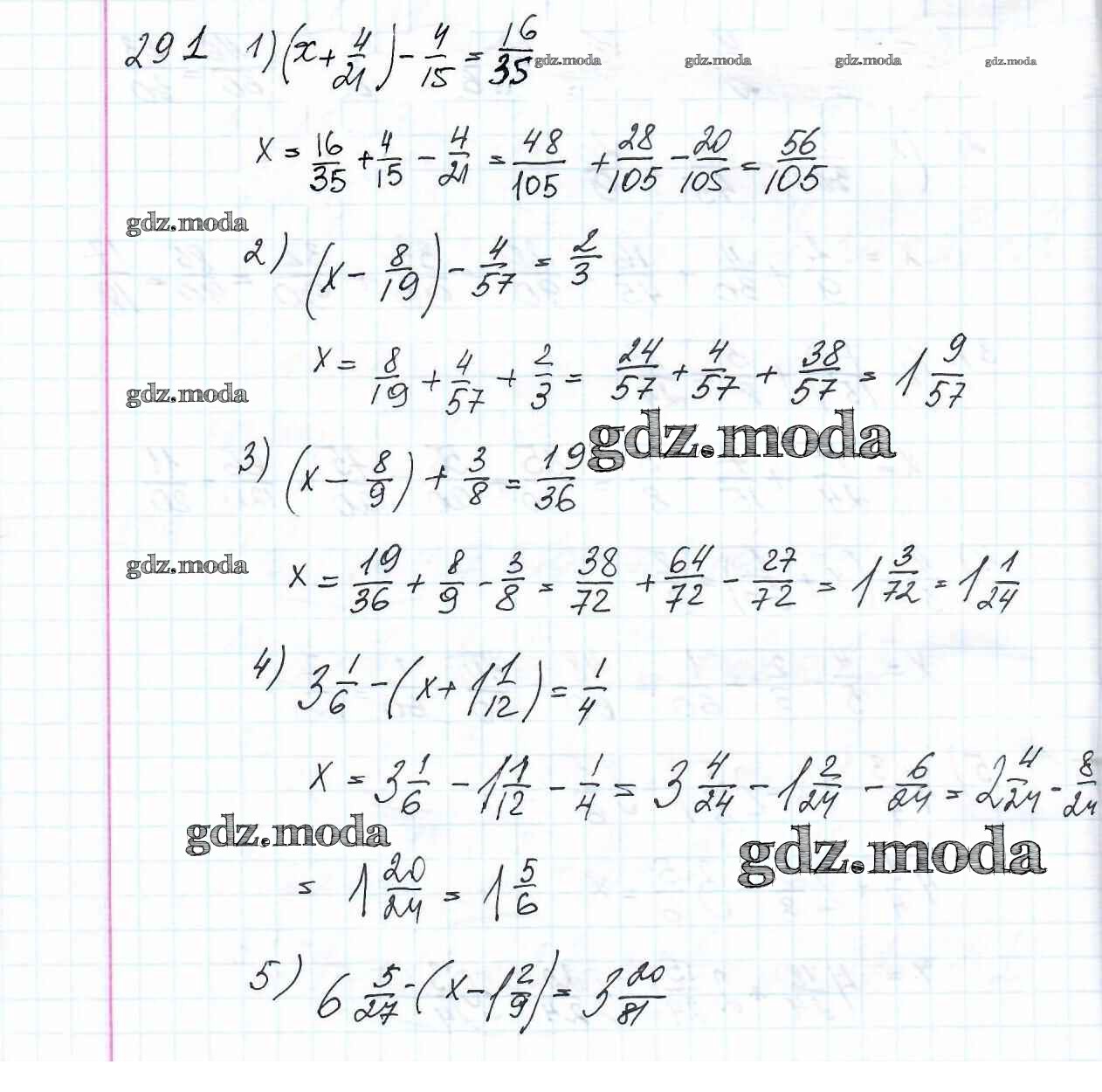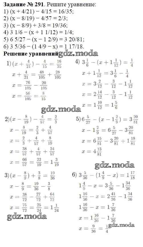 ОТВЕТ на задание № 291 Учебник по Математике 6 класс Мерзляк Алгоритм успеха