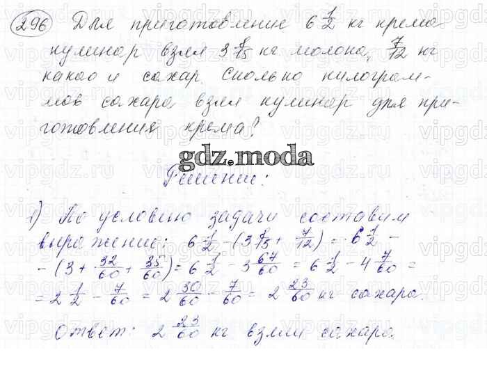 ОТВЕТ на задание № 296 Учебник по Математике 6 класс Мерзляк Алгоритм успеха