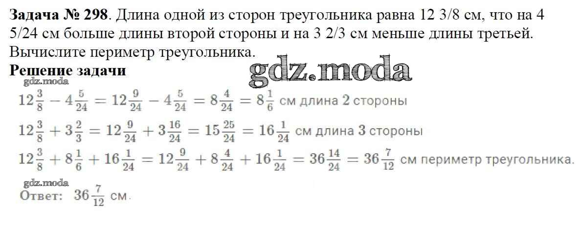 ОТВЕТ на задание № 298 Учебник по Математике 6 класс Мерзляк Алгоритм успеха