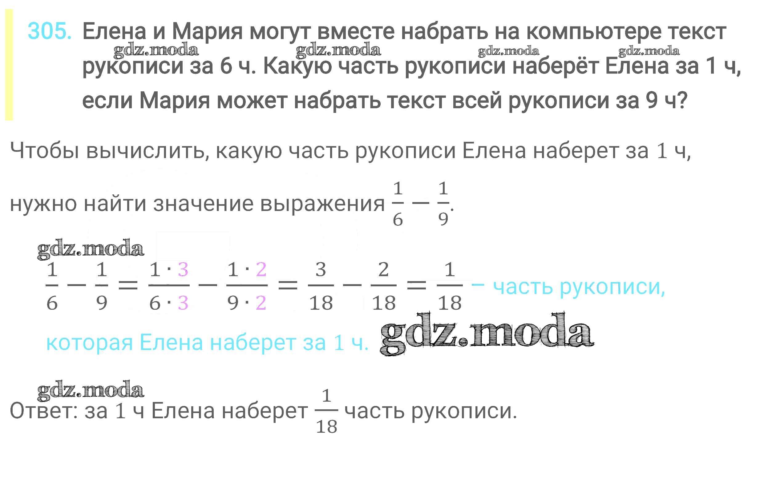 ОТВЕТ на задание № 305 Учебник по Математике 6 класс Мерзляк Алгоритм успеха