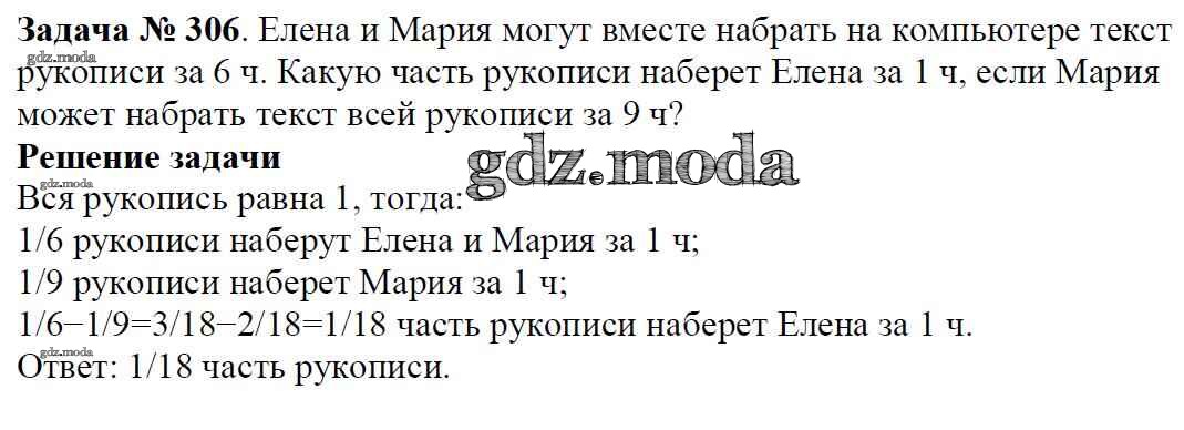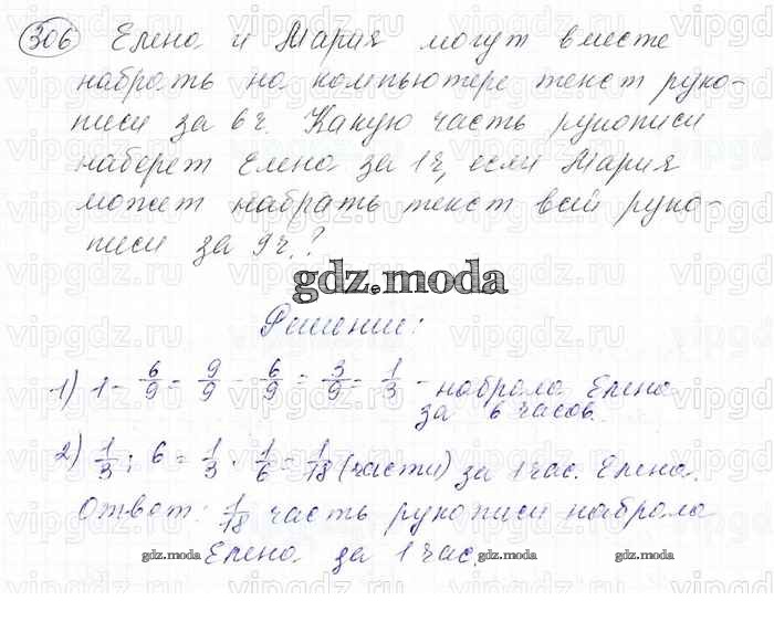 ОТВЕТ на задание № 306 Учебник по Математике 6 класс Мерзляк Алгоритм успеха