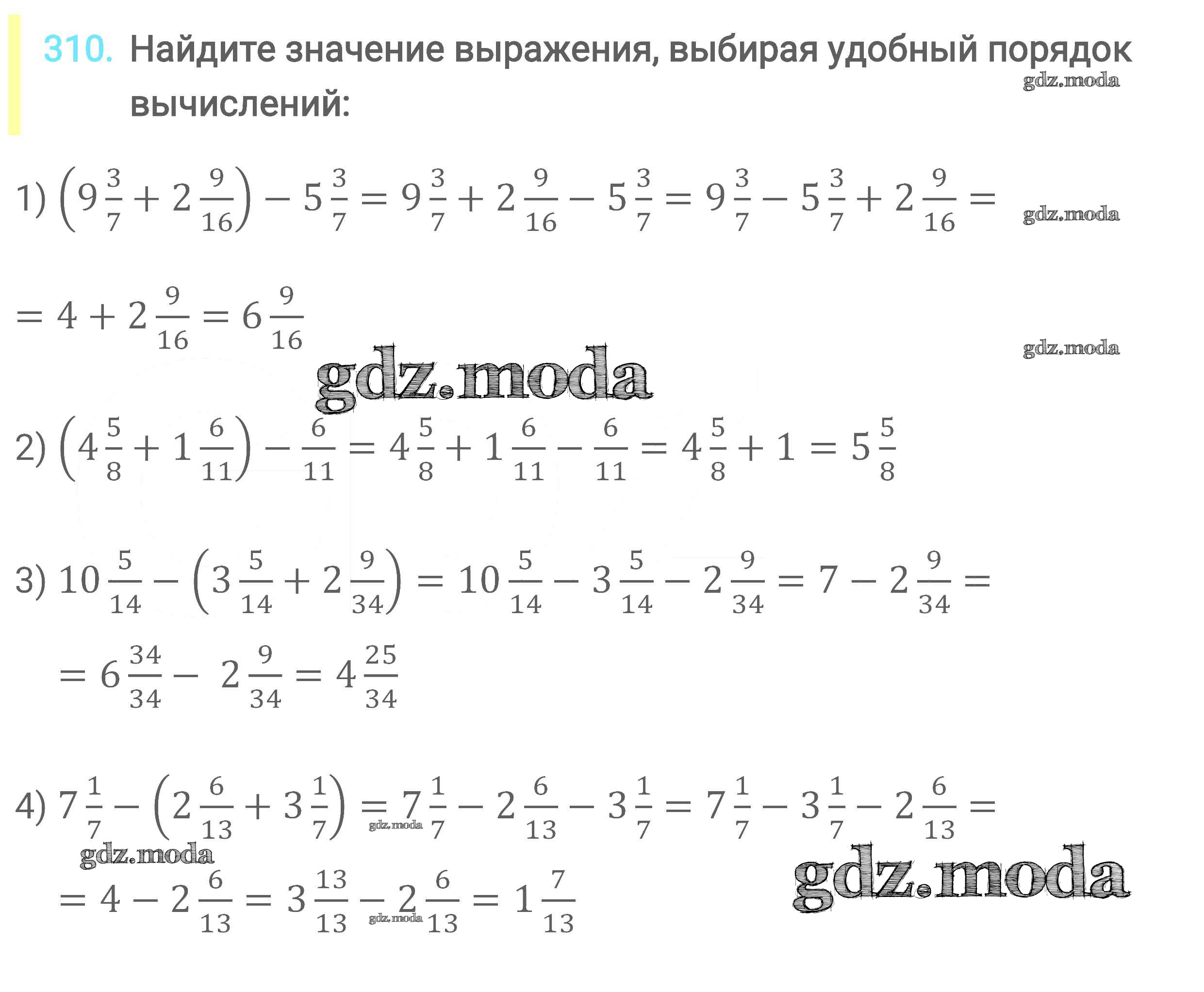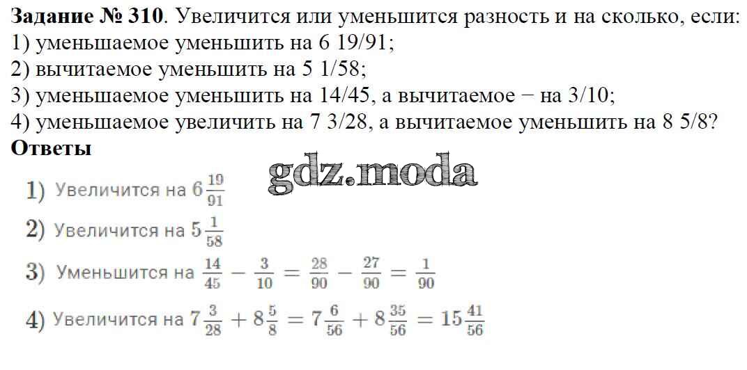ОТВЕТ на задание № 310 Учебник по Математике 6 класс Мерзляк Алгоритм успеха