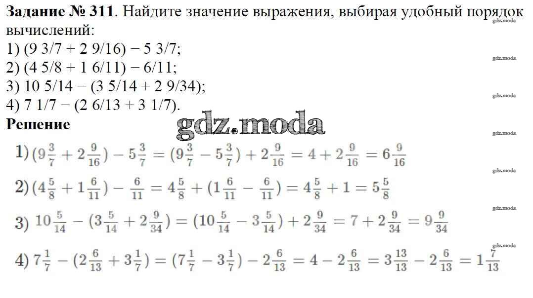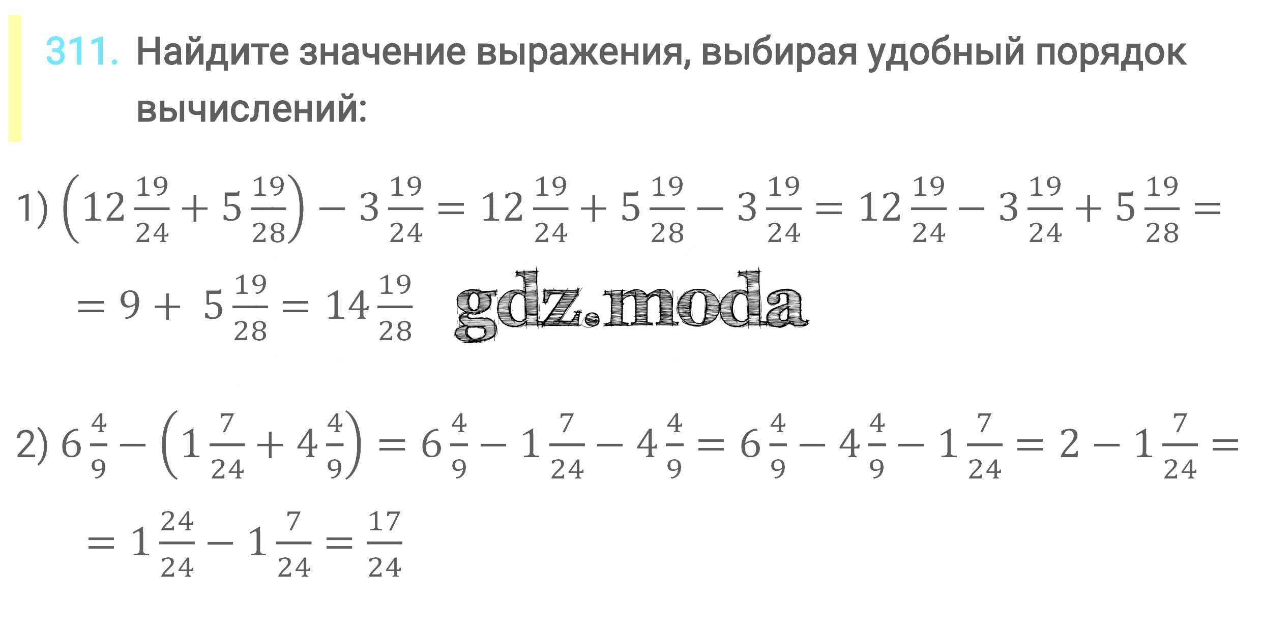 ОТВЕТ на задание № 311 Учебник по Математике 6 класс Мерзляк Алгоритм успеха