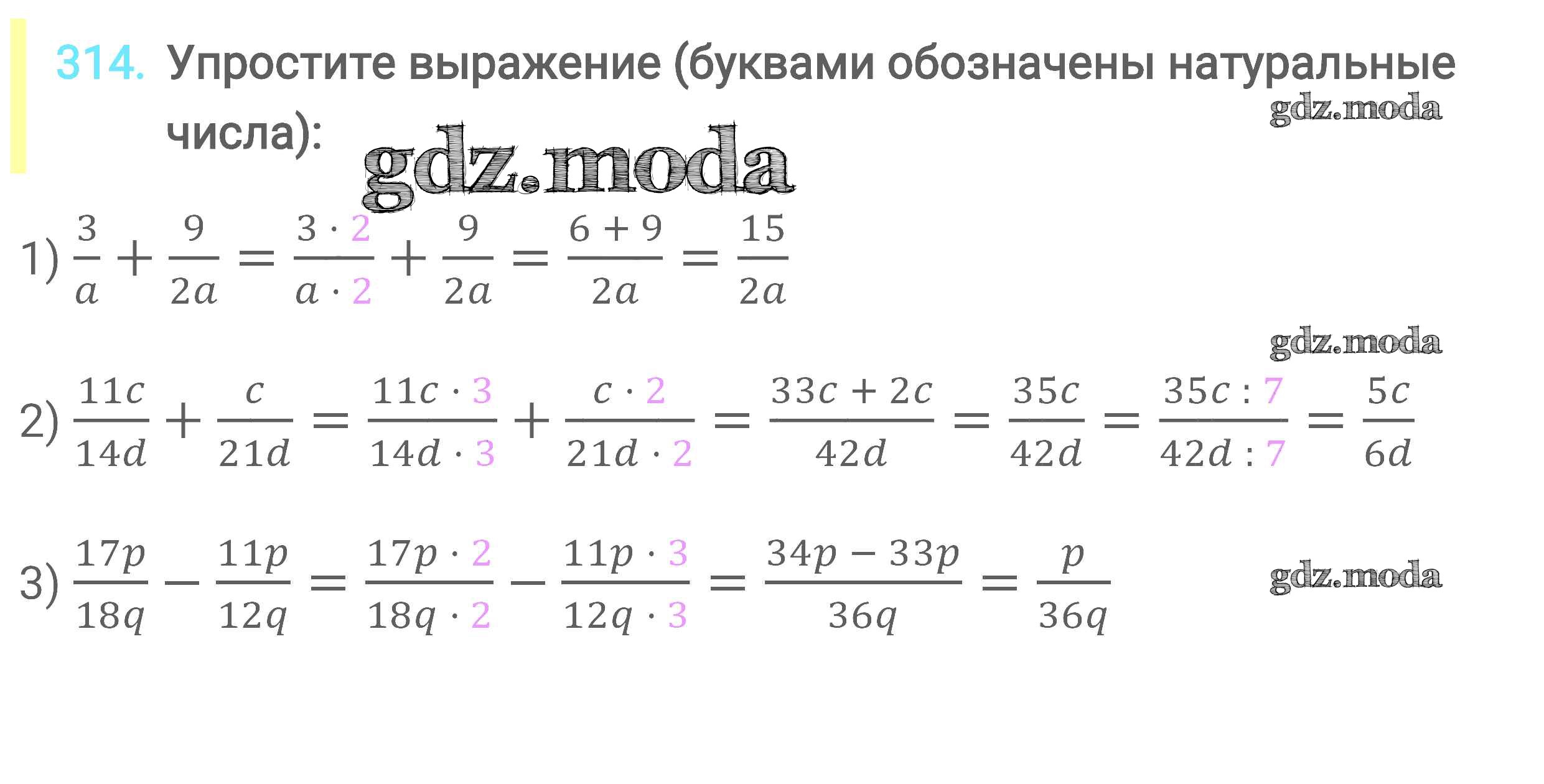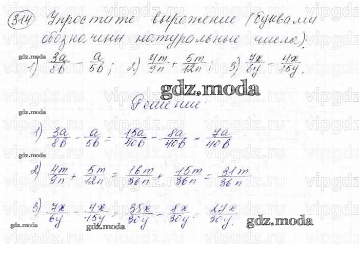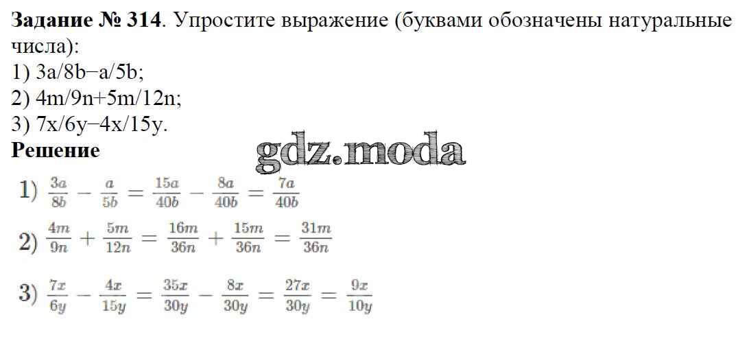 ОТВЕТ на задание № 314 Учебник по Математике 6 класс Мерзляк Алгоритм успеха