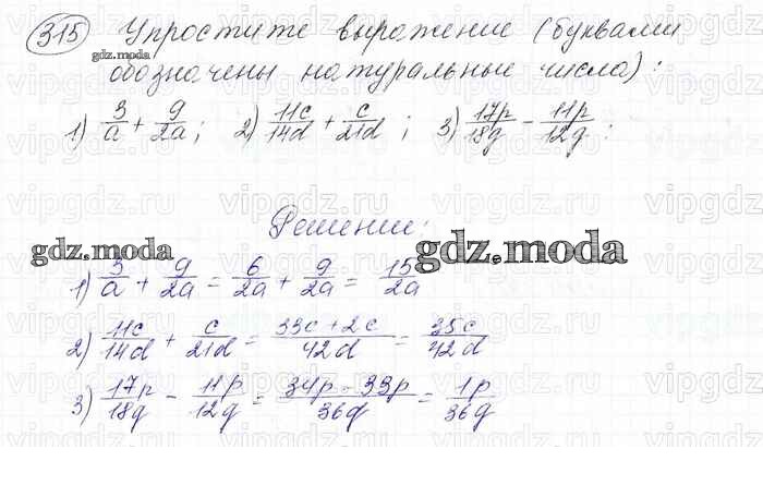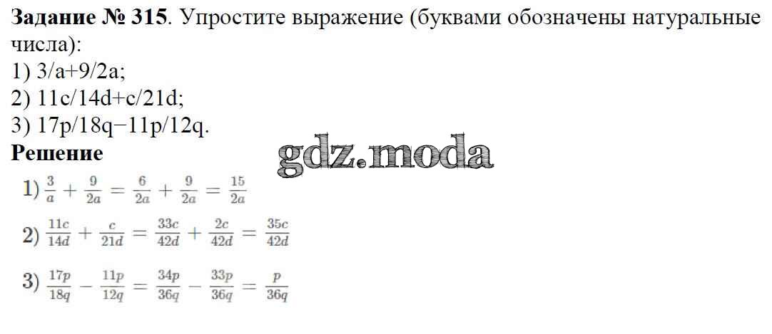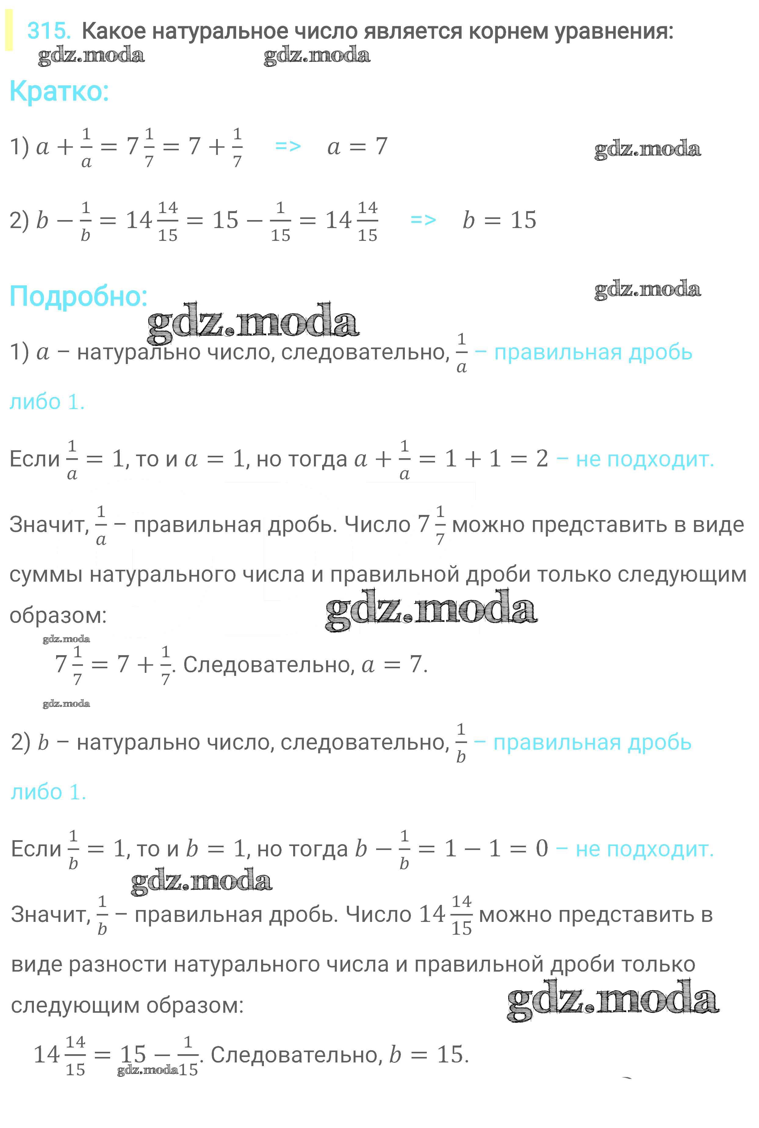 ОТВЕТ на задание № 315 Учебник по Математике 6 класс Мерзляк Алгоритм успеха