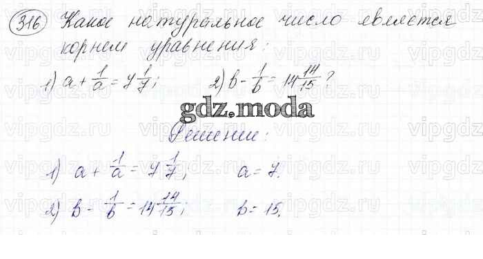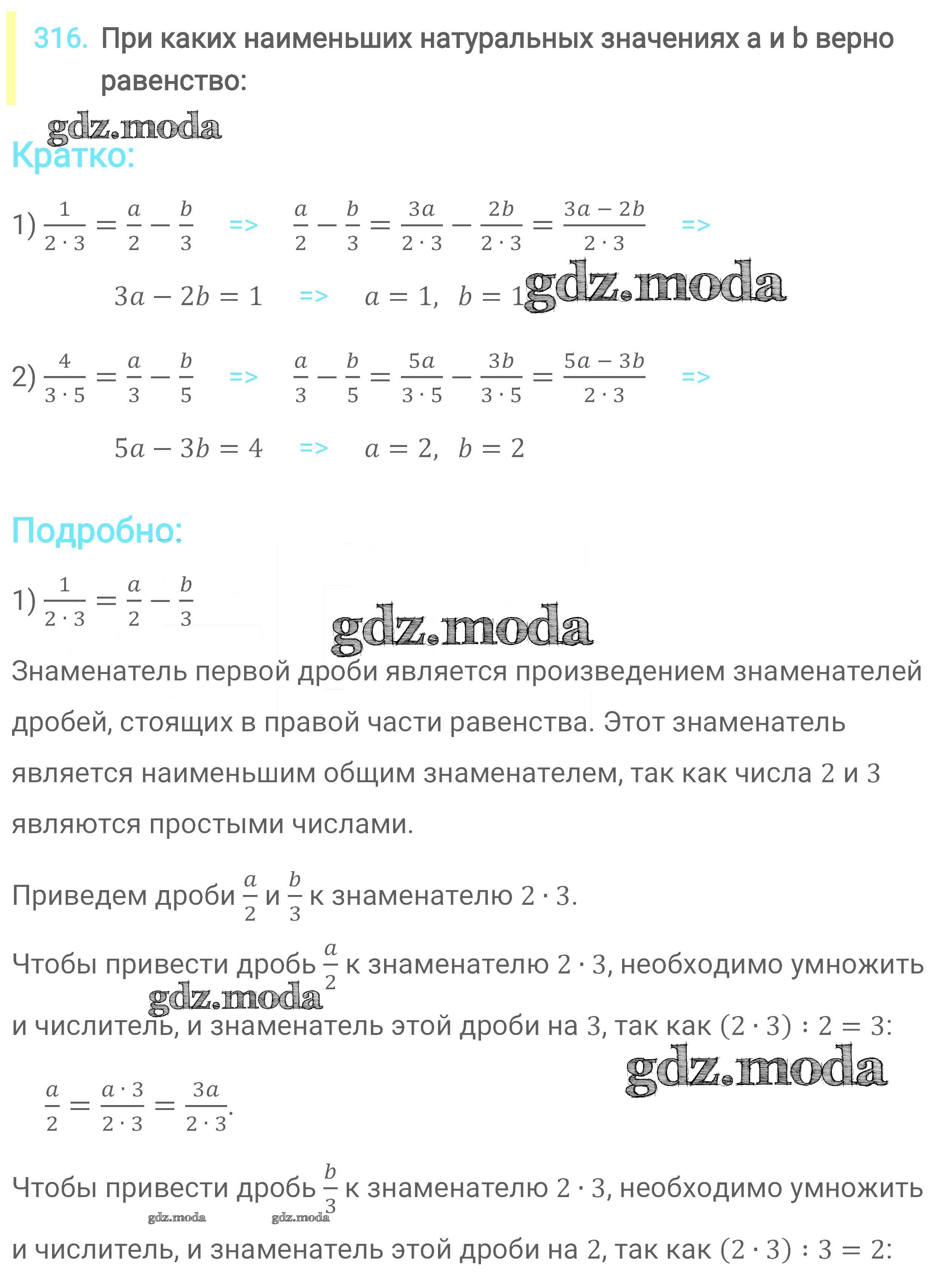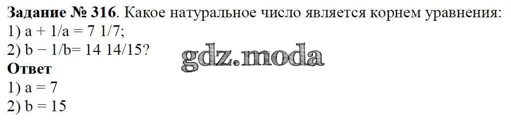 ОТВЕТ на задание № 316 Учебник по Математике 6 класс Мерзляк Алгоритм успеха