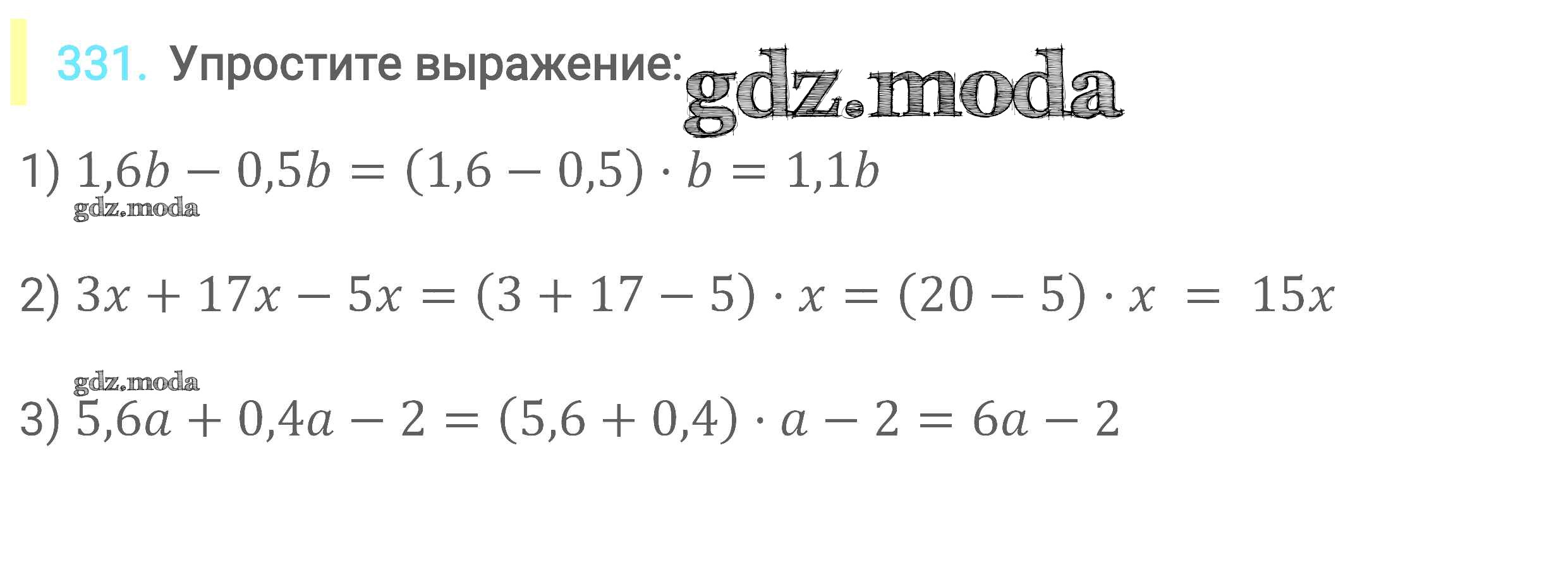 ОТВЕТ на задание № 331 Учебник по Математике 6 класс Мерзляк Алгоритм успеха