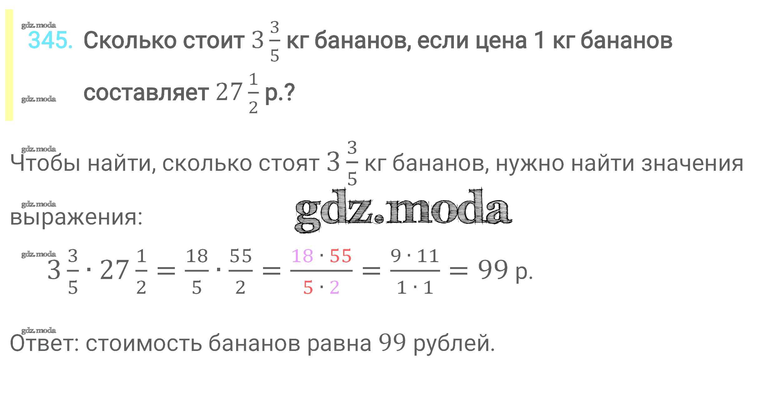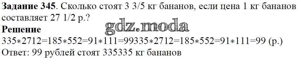 ОТВЕТ на задание № 345 Учебник по Математике 6 класс Мерзляк Алгоритм успеха
