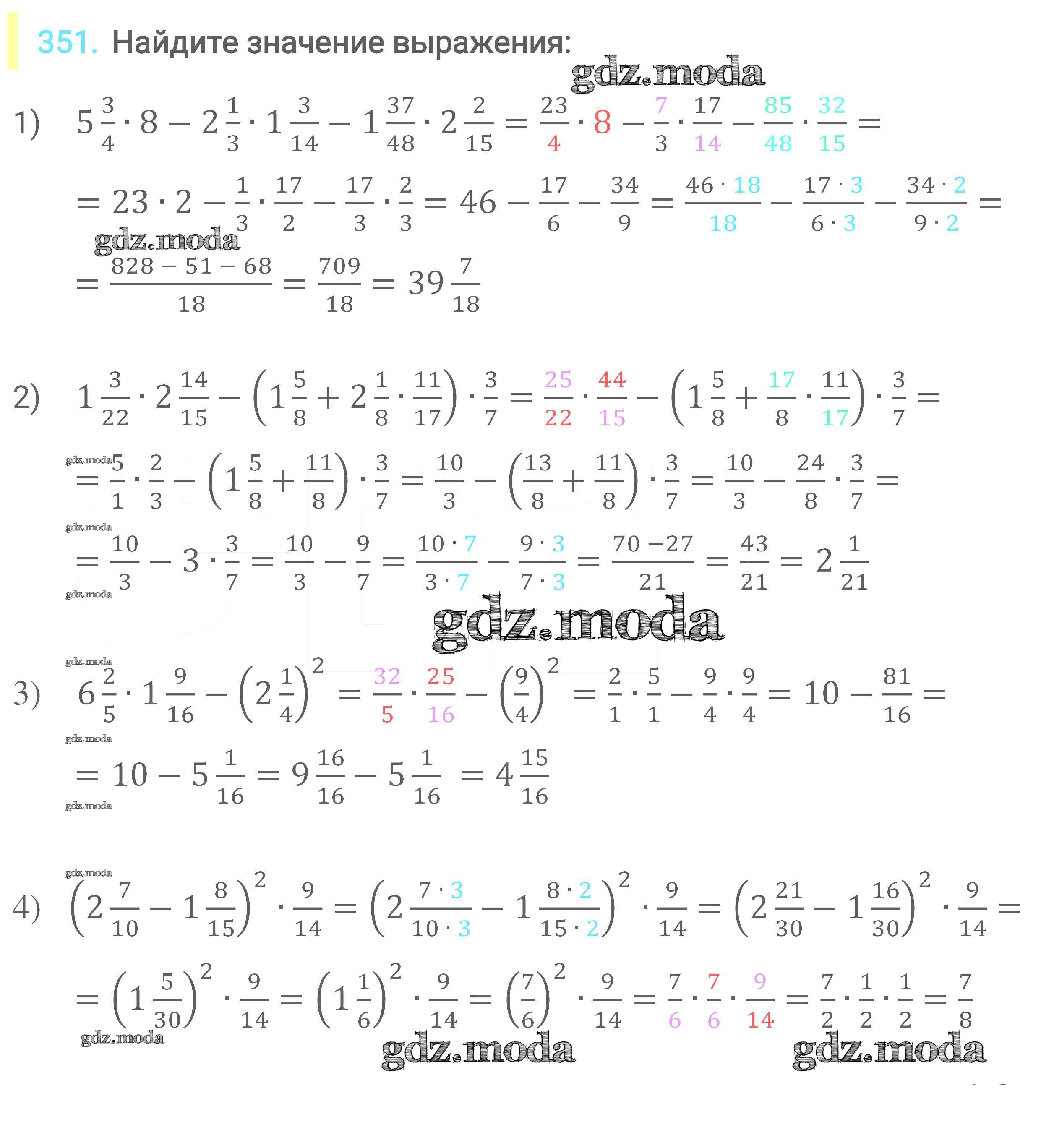 ОТВЕТ на задание № 351 Учебник по Математике 6 класс Мерзляк Алгоритм успеха