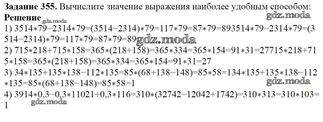ОТВЕТ на задание № 355 Учебник по Математике 6 класс Мерзляк Алгоритм успеха