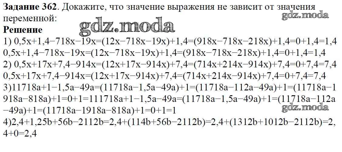 ОТВЕТ на задание № 362 Учебник по Математике 6 класс Мерзляк Алгоритм успеха
