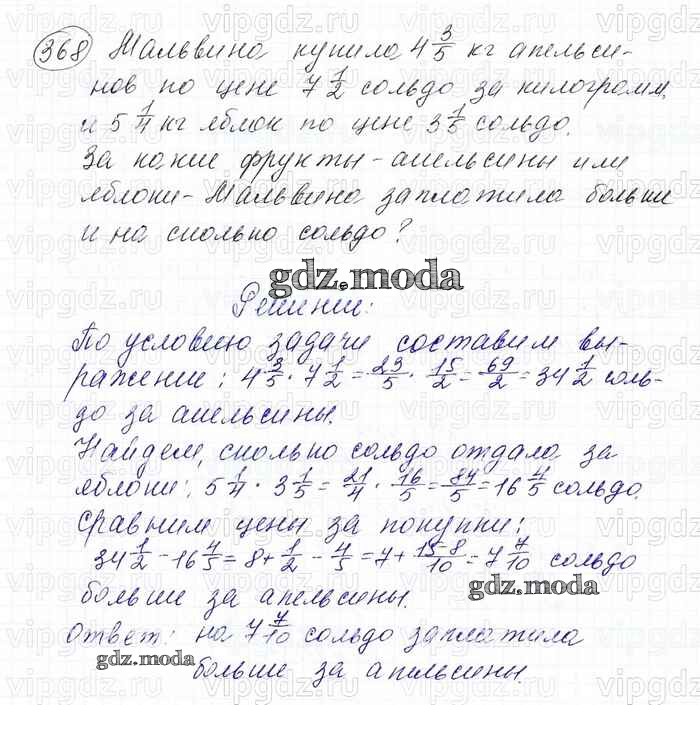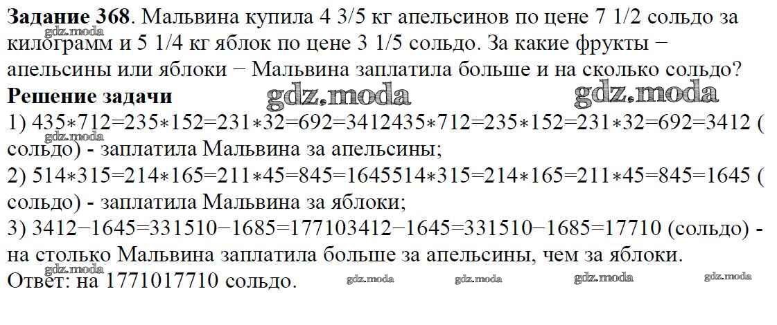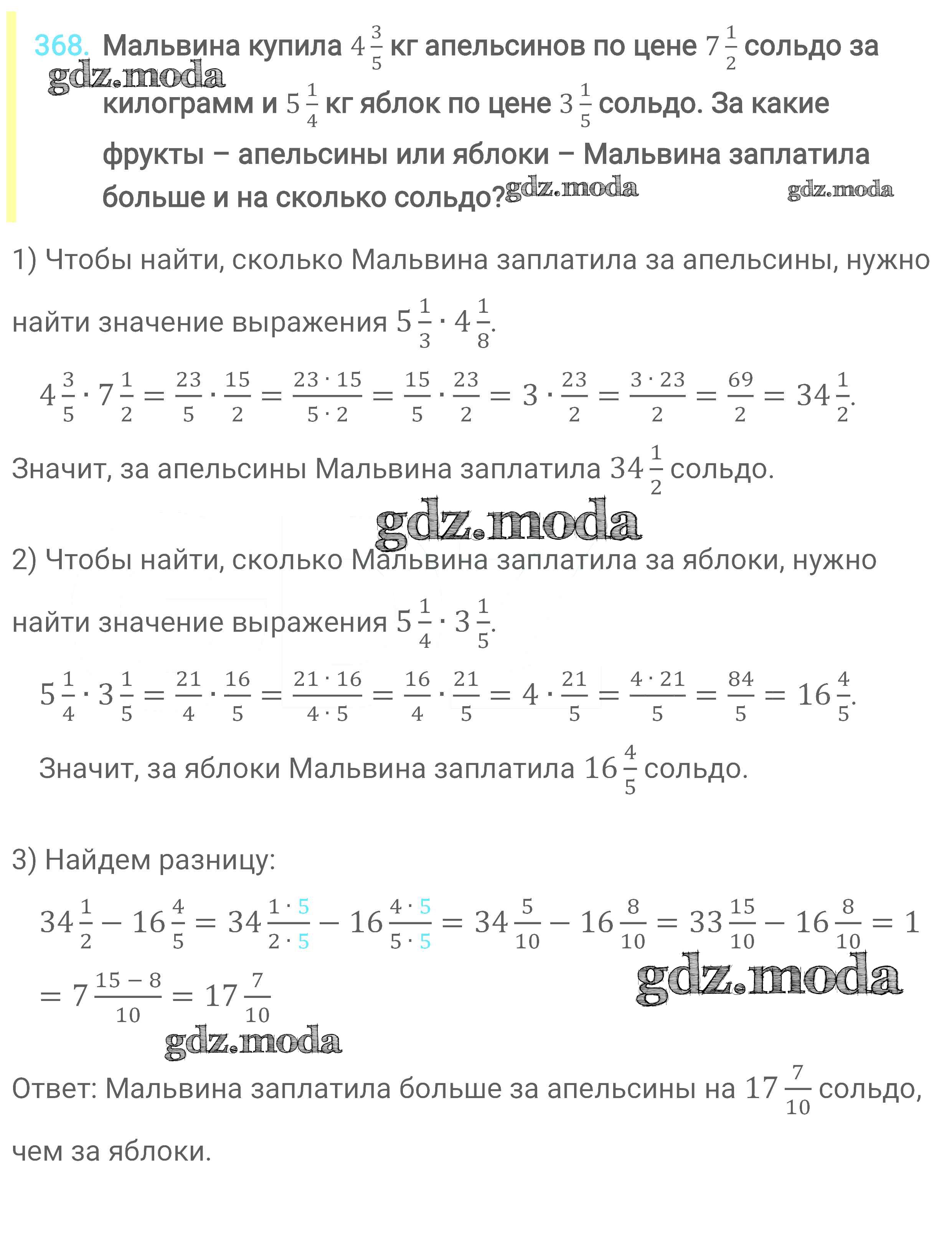 ОТВЕТ на задание № 368 Учебник по Математике 6 класс Мерзляк Алгоритм успеха