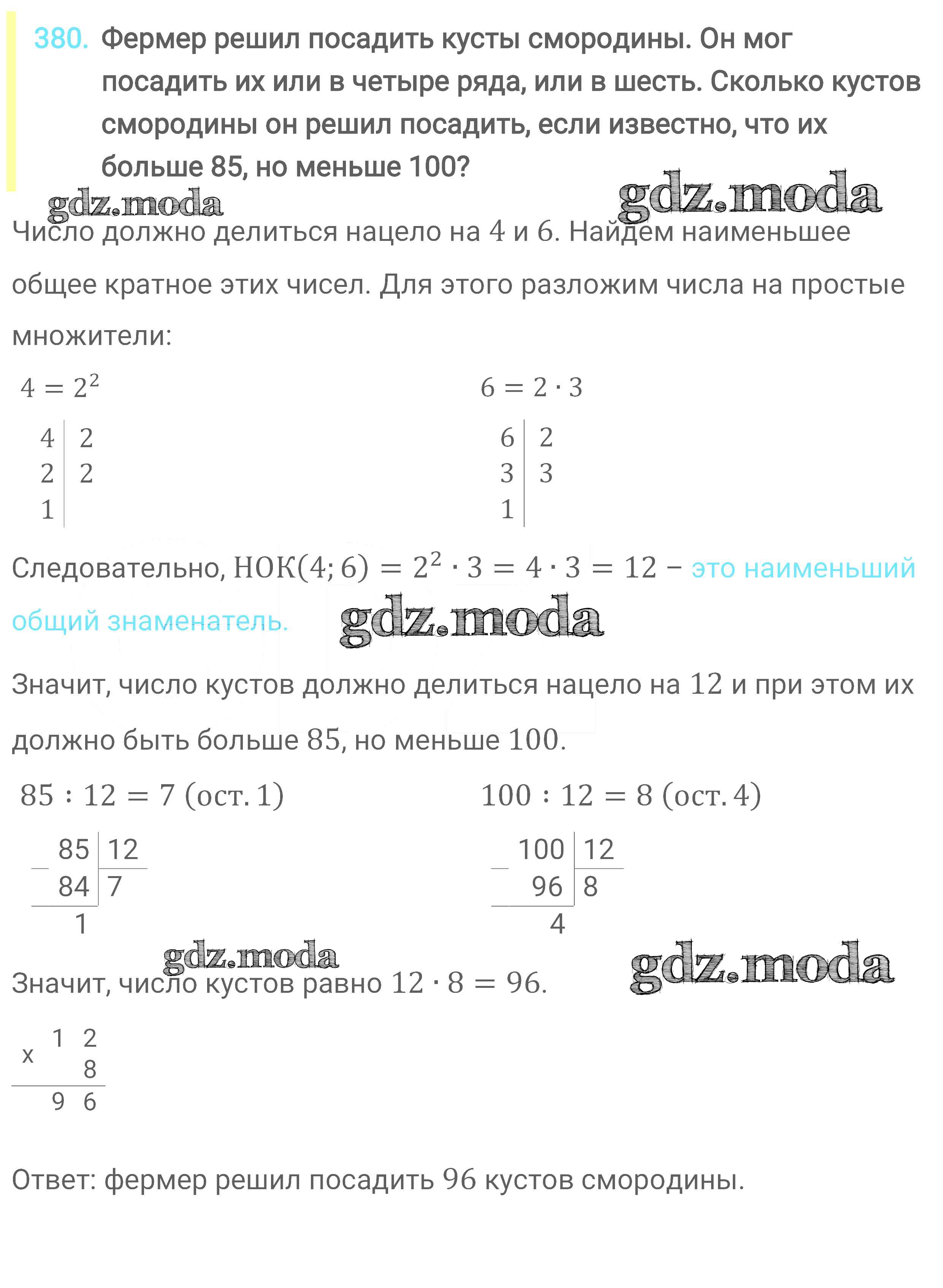 ОТВЕТ на задание № 380 Учебник по Математике 6 класс Мерзляк Алгоритм успеха