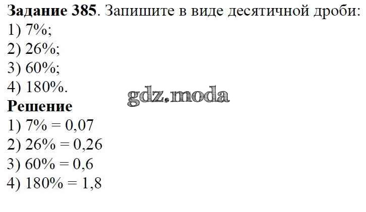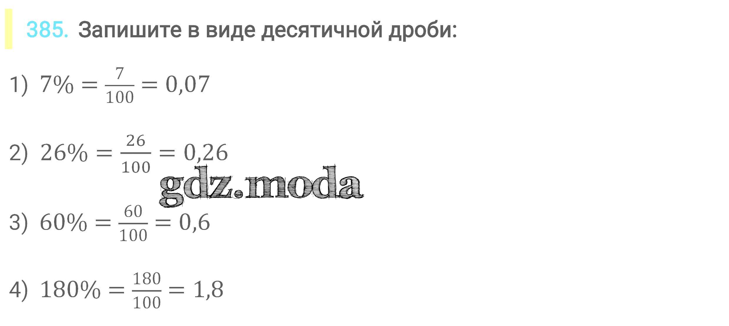 ОТВЕТ на задание № 385 Учебник по Математике 6 класс Мерзляк Алгоритм успеха