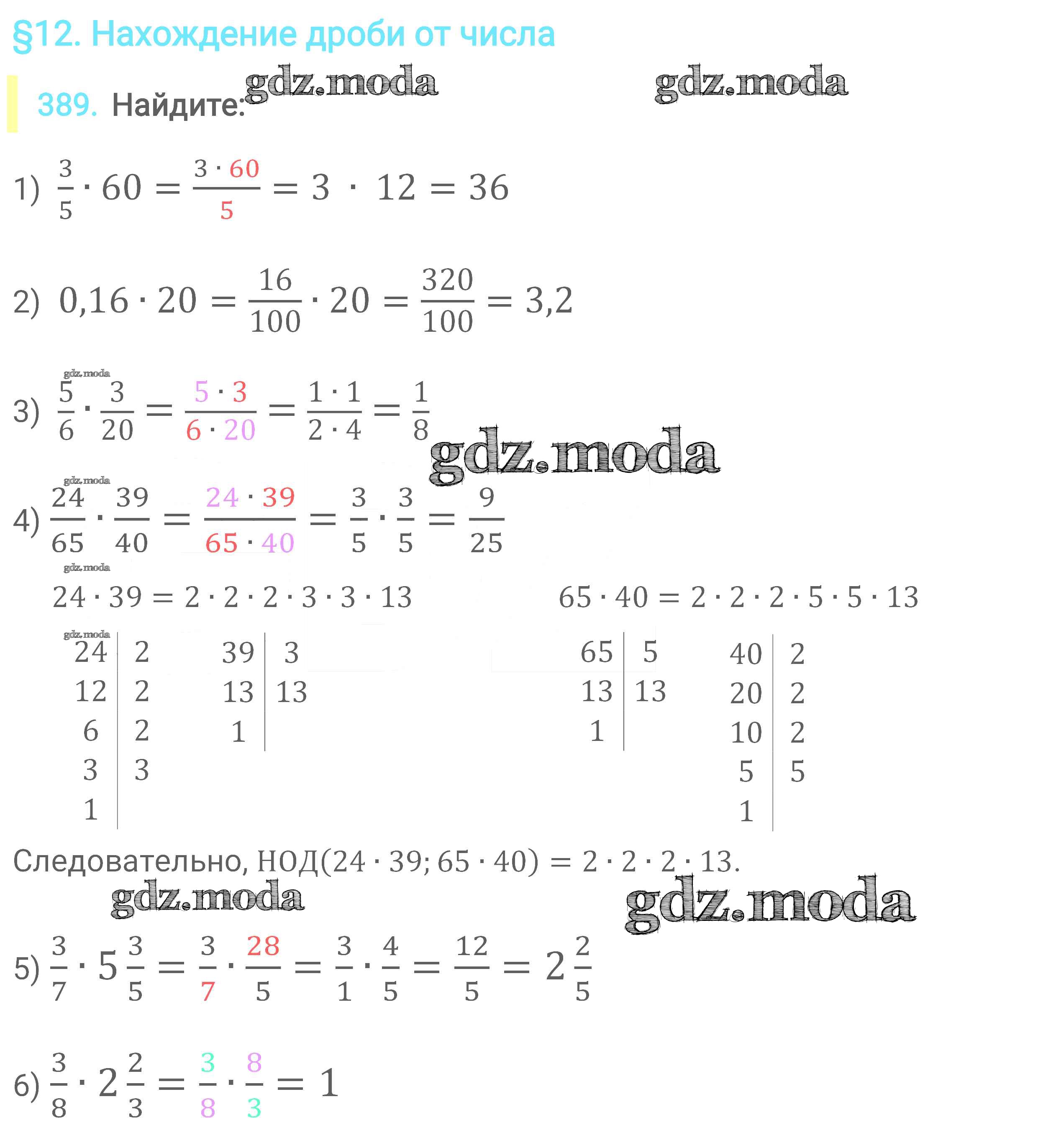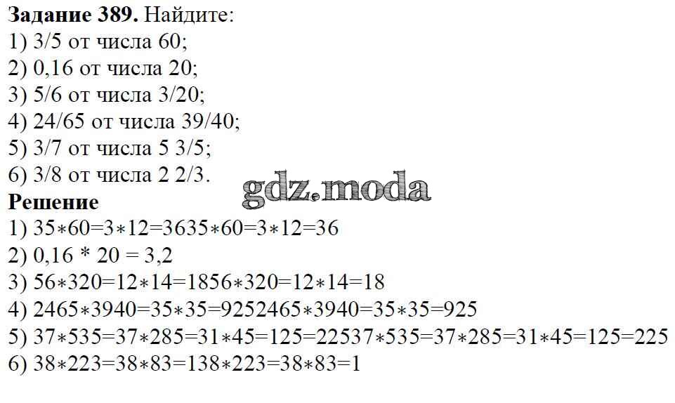ОТВЕТ на задание № 389 Учебник по Математике 6 класс Мерзляк Алгоритм успеха