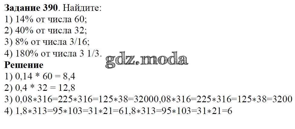 ОТВЕТ на задание № 390 Учебник по Математике 6 класс Мерзляк Алгоритм успеха