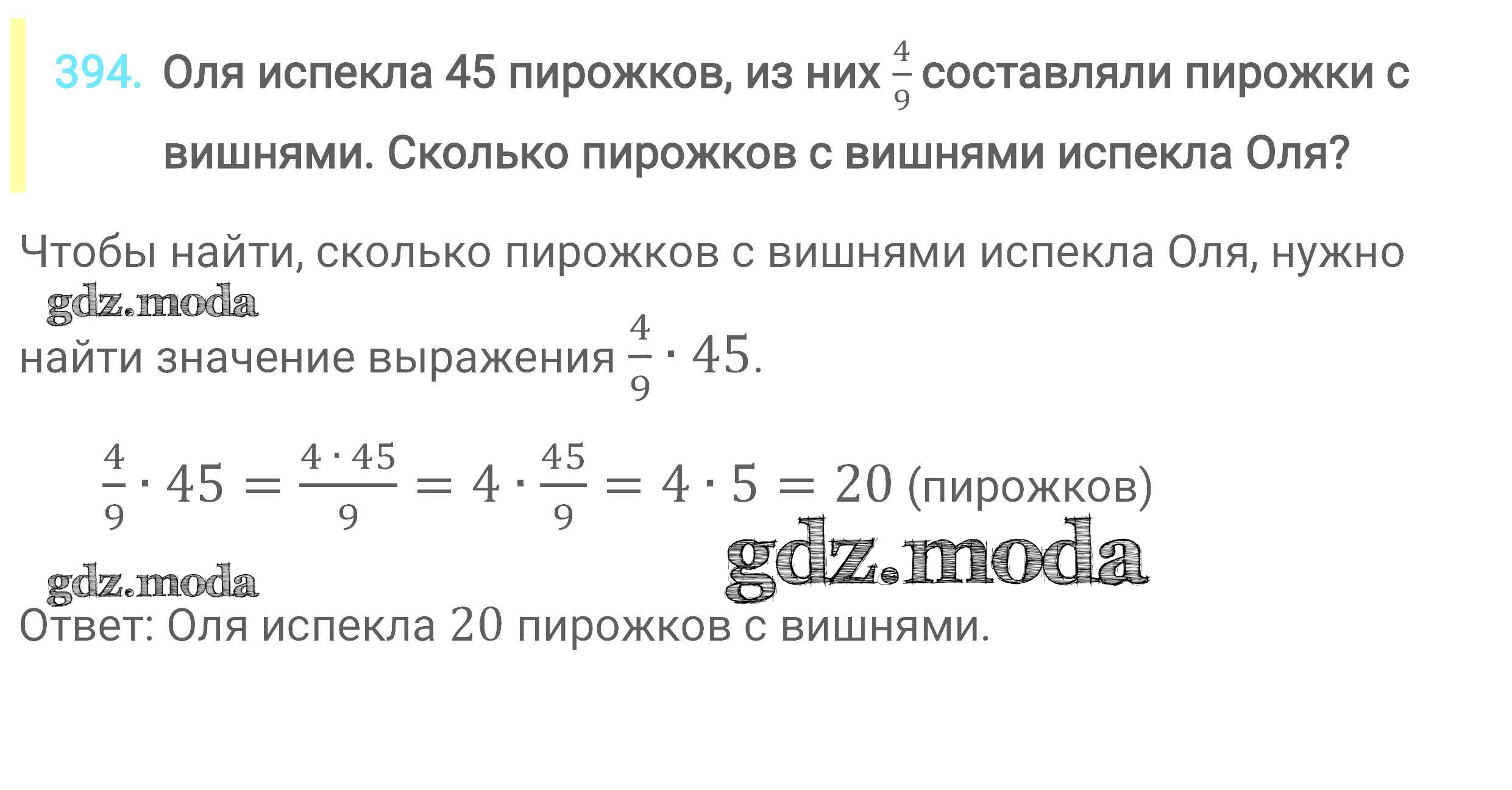 ОТВЕТ на задание № 394 Учебник по Математике 6 класс Мерзляк Алгоритм успеха