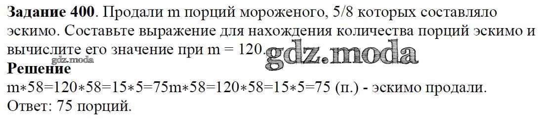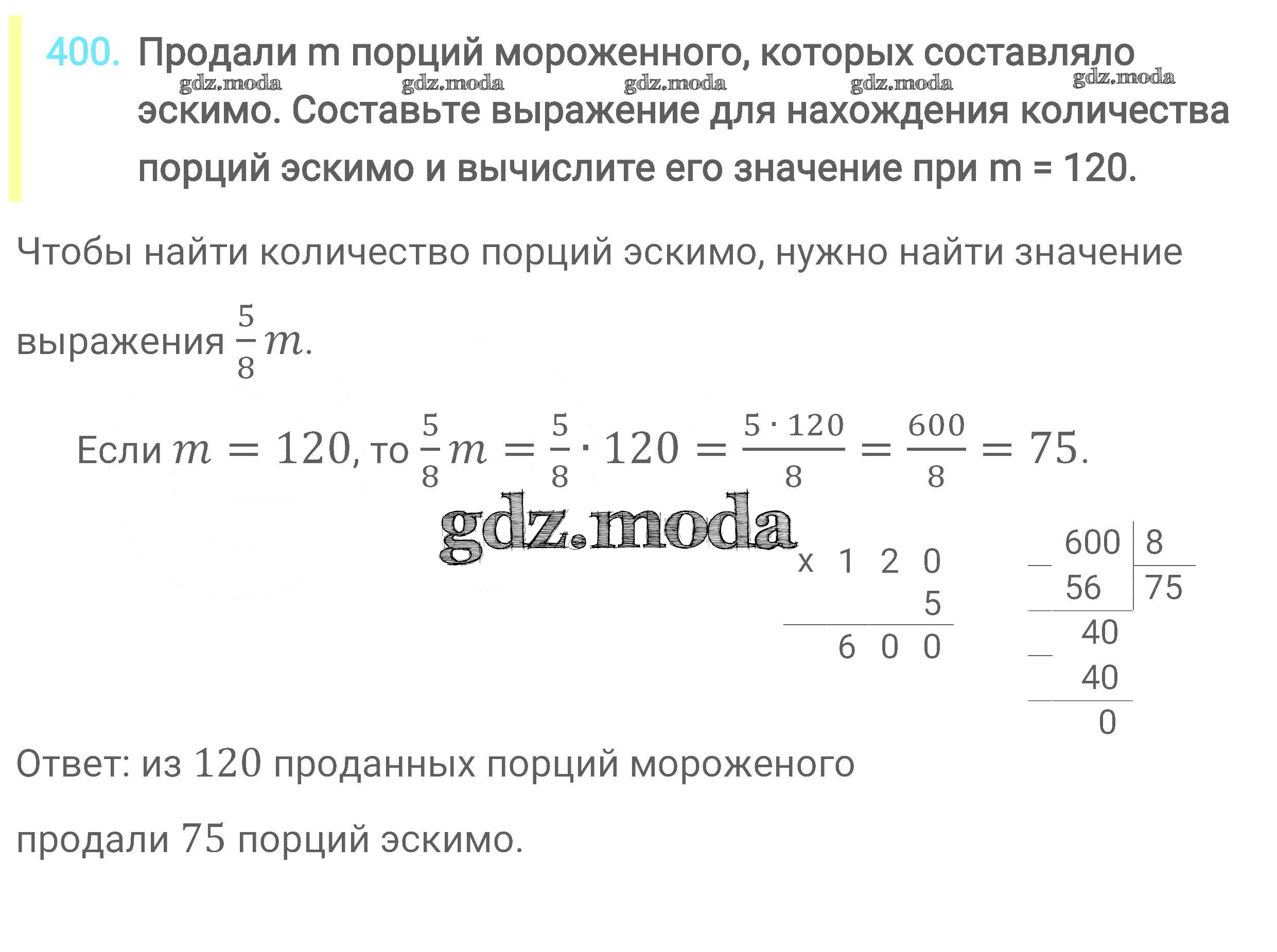 ОТВЕТ на задание № 400 Учебник по Математике 6 класс Мерзляк Алгоритм успеха