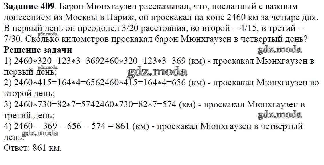ОТВЕТ на задание № 409 Учебник по Математике 6 класс Мерзляк Алгоритм успеха