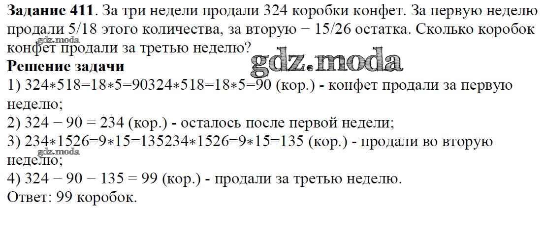 ОТВЕТ на задание № 411 Учебник по Математике 6 класс Мерзляк Алгоритм успеха