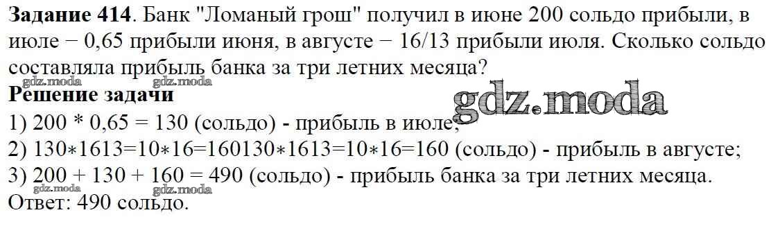 ОТВЕТ на задание № 414 Учебник по Математике 6 класс Мерзляк Алгоритм успеха