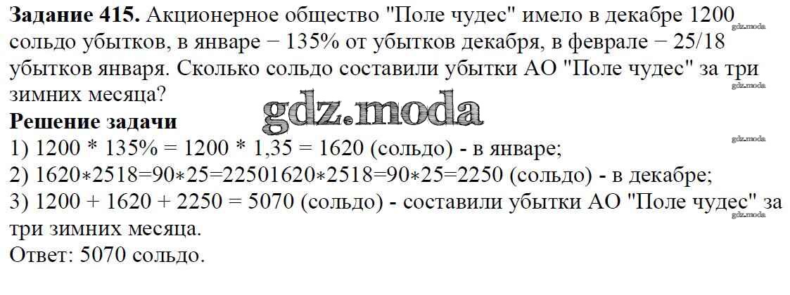 ОТВЕТ на задание № 415 Учебник по Математике 6 класс Мерзляк Алгоритм успеха