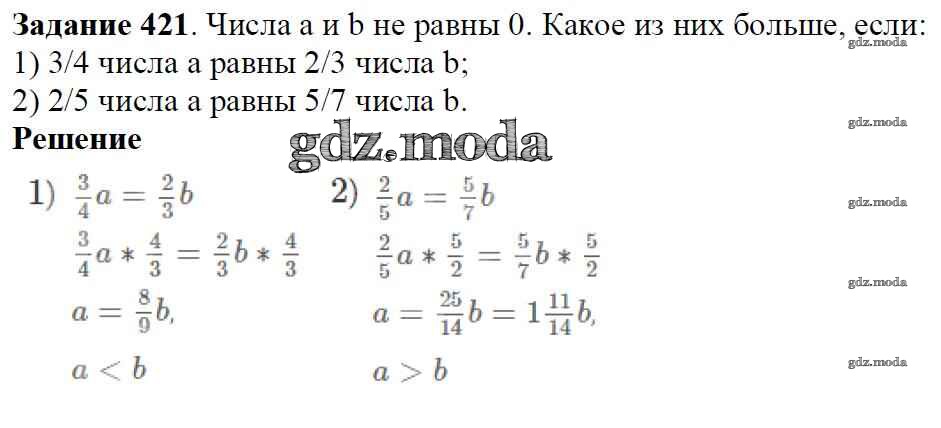 ОТВЕТ на задание № 421 Учебник по Математике 6 класс Мерзляк Алгоритм успеха