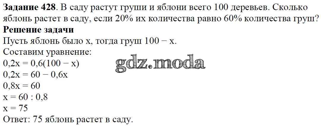 ОТВЕТ на задание № 428 Учебник по Математике 6 класс Мерзляк Алгоритм успеха