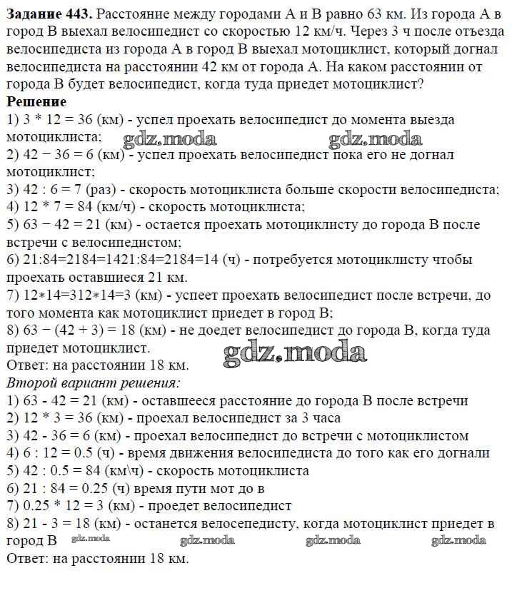 ОТВЕТ на задание № 443 Учебник по Математике 6 класс Мерзляк Алгоритм успеха