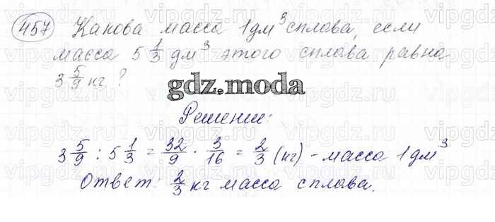 ОТВЕТ на задание № 457 Учебник по Математике 6 класс Мерзляк Алгоритм успеха