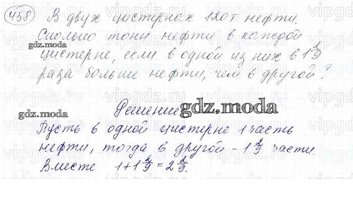 ОТВЕТ на задание № 458 Учебник по Математике 6 класс Мерзляк Алгоритм успеха